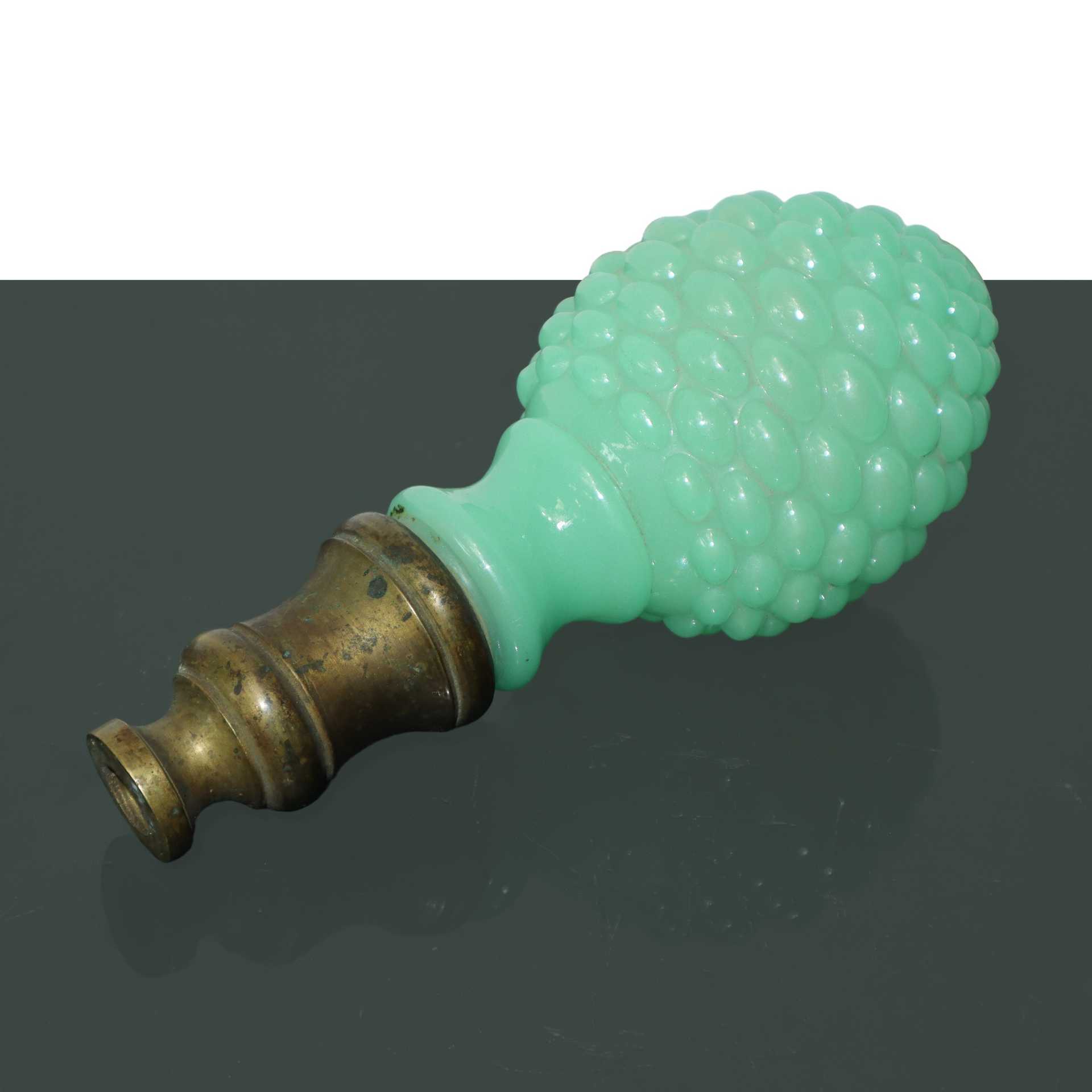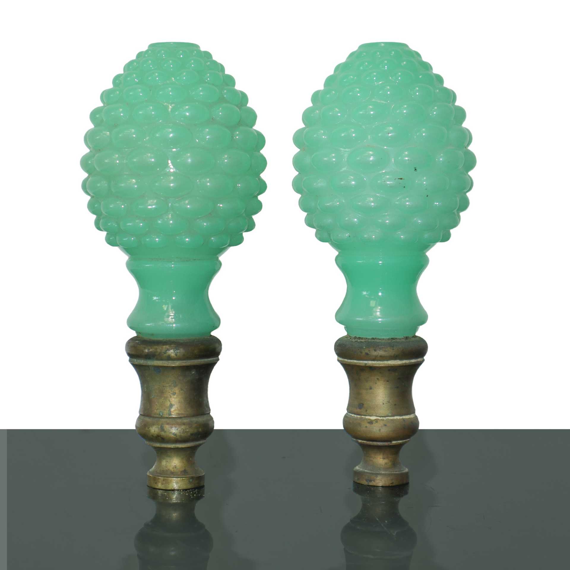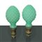 Coppia di pomoli in vetro di Murano verde e ottone dorato