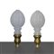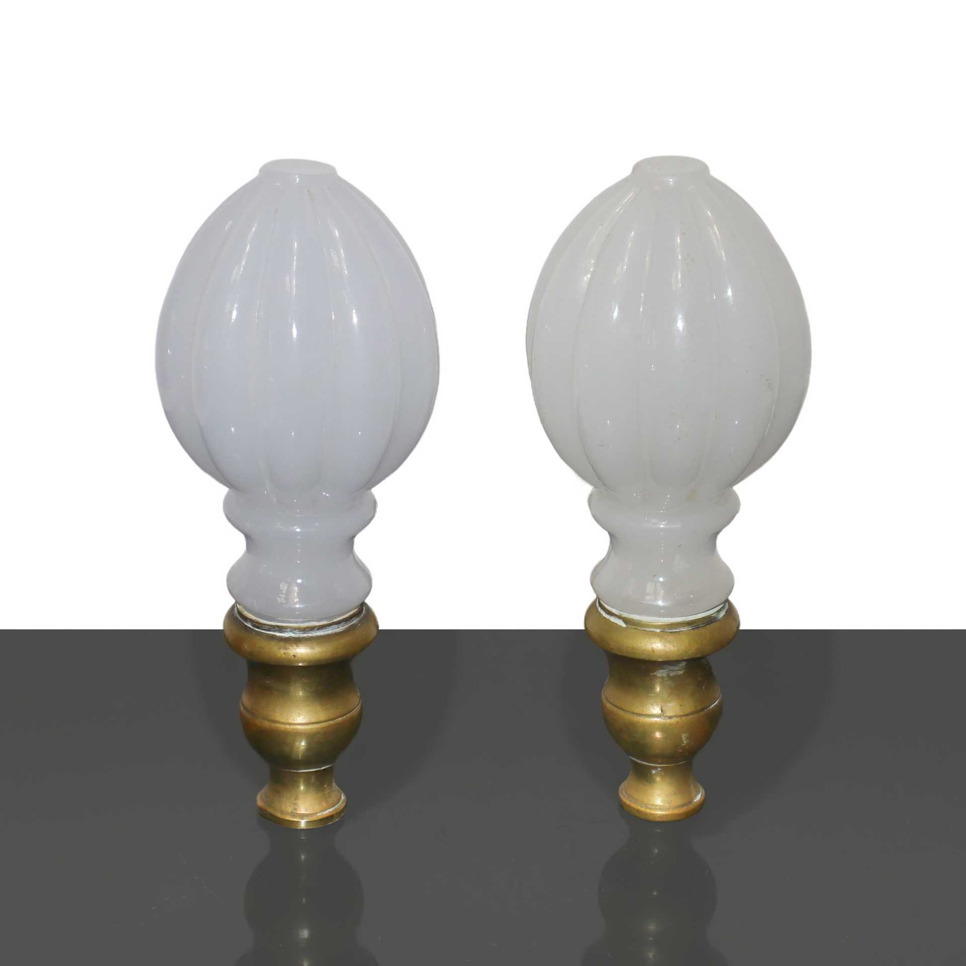 Coppia di pomoli da letto in vetro di Murano lattimo e ottone dorato H cm 19