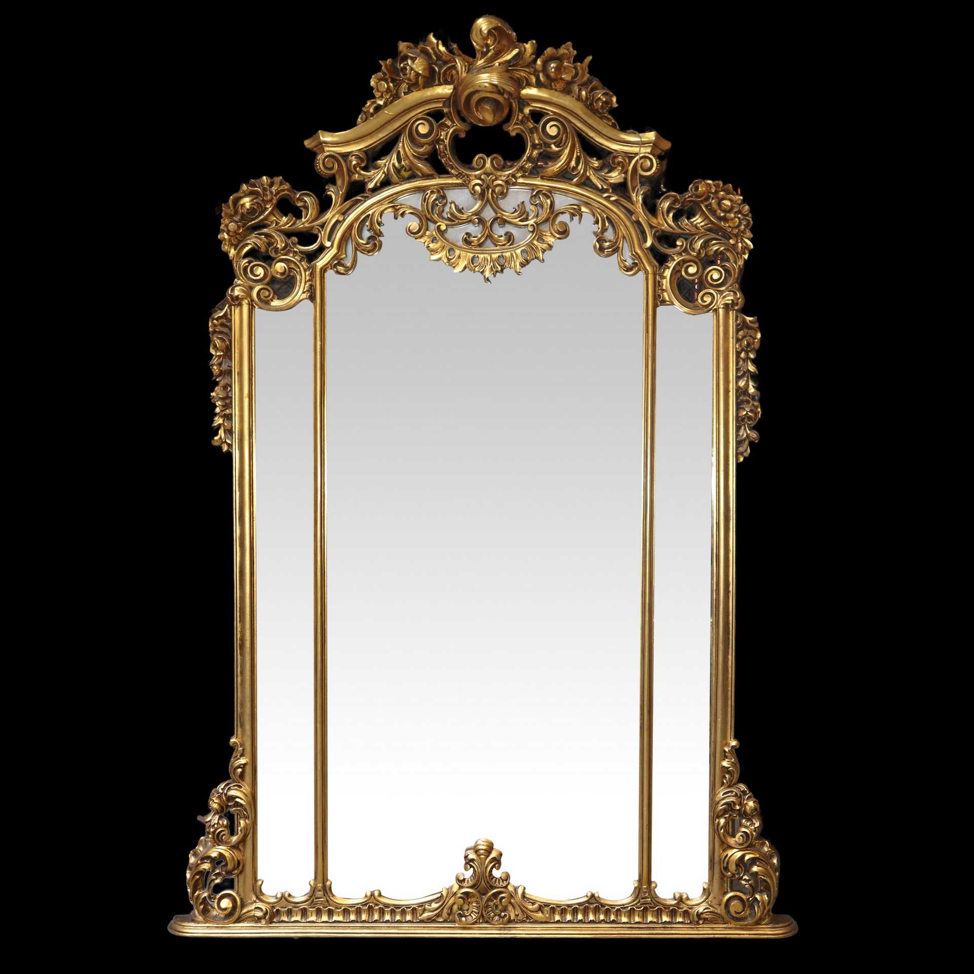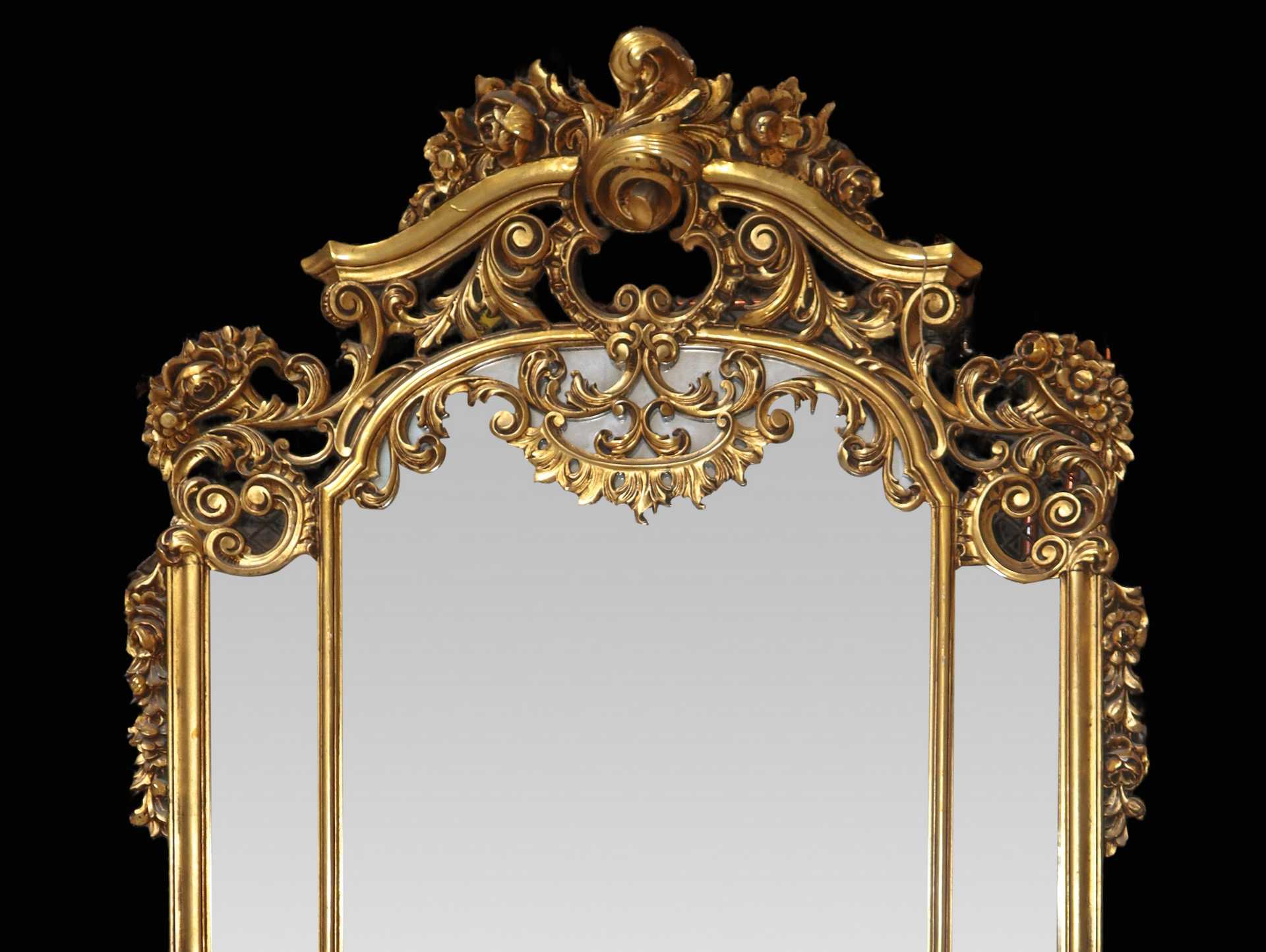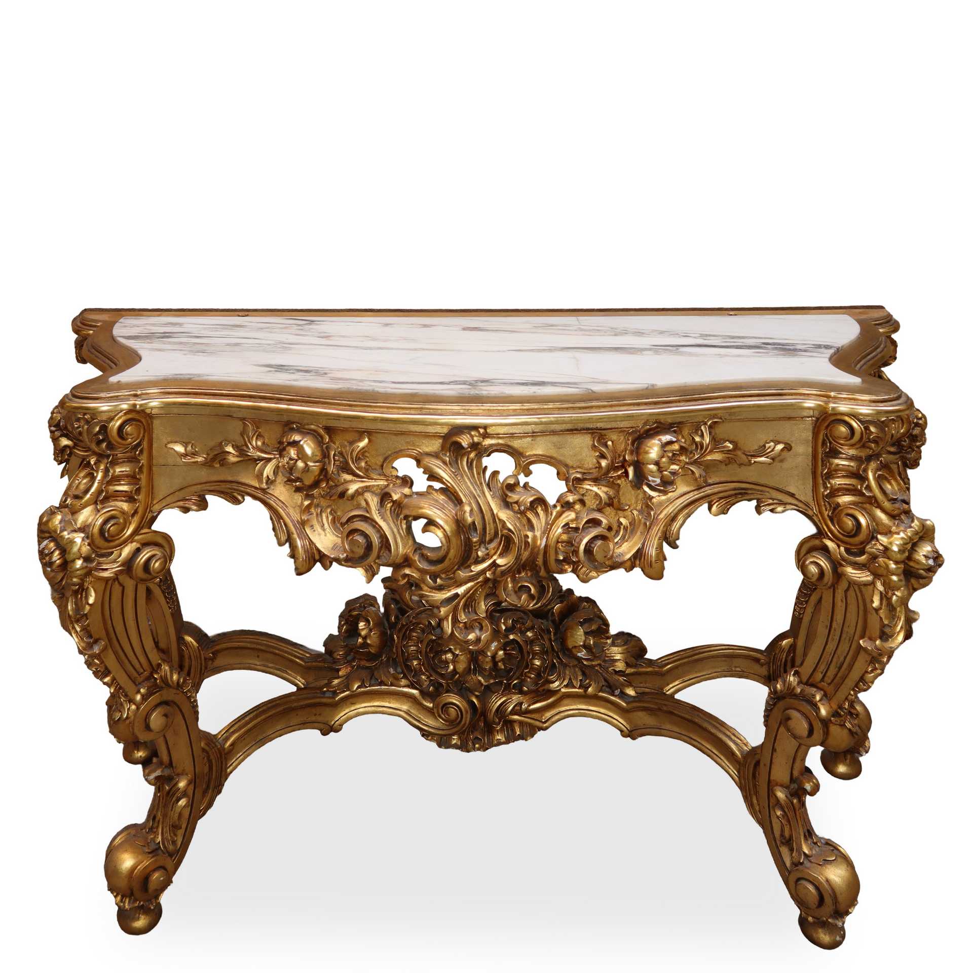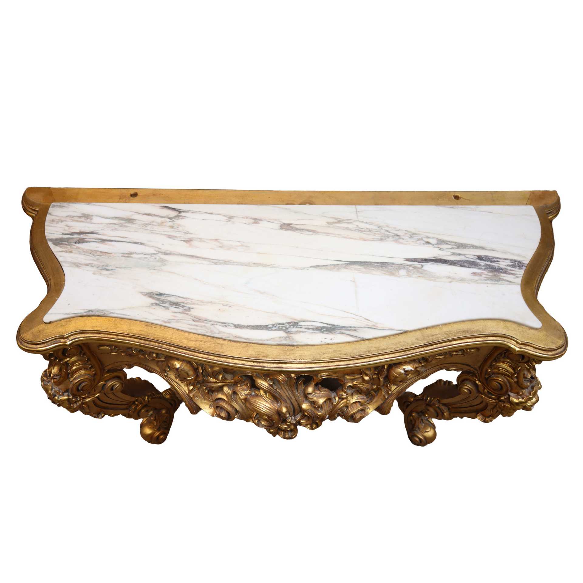 Console con specchiera nello stile barocco dorata a foglie , primi 20° secolo