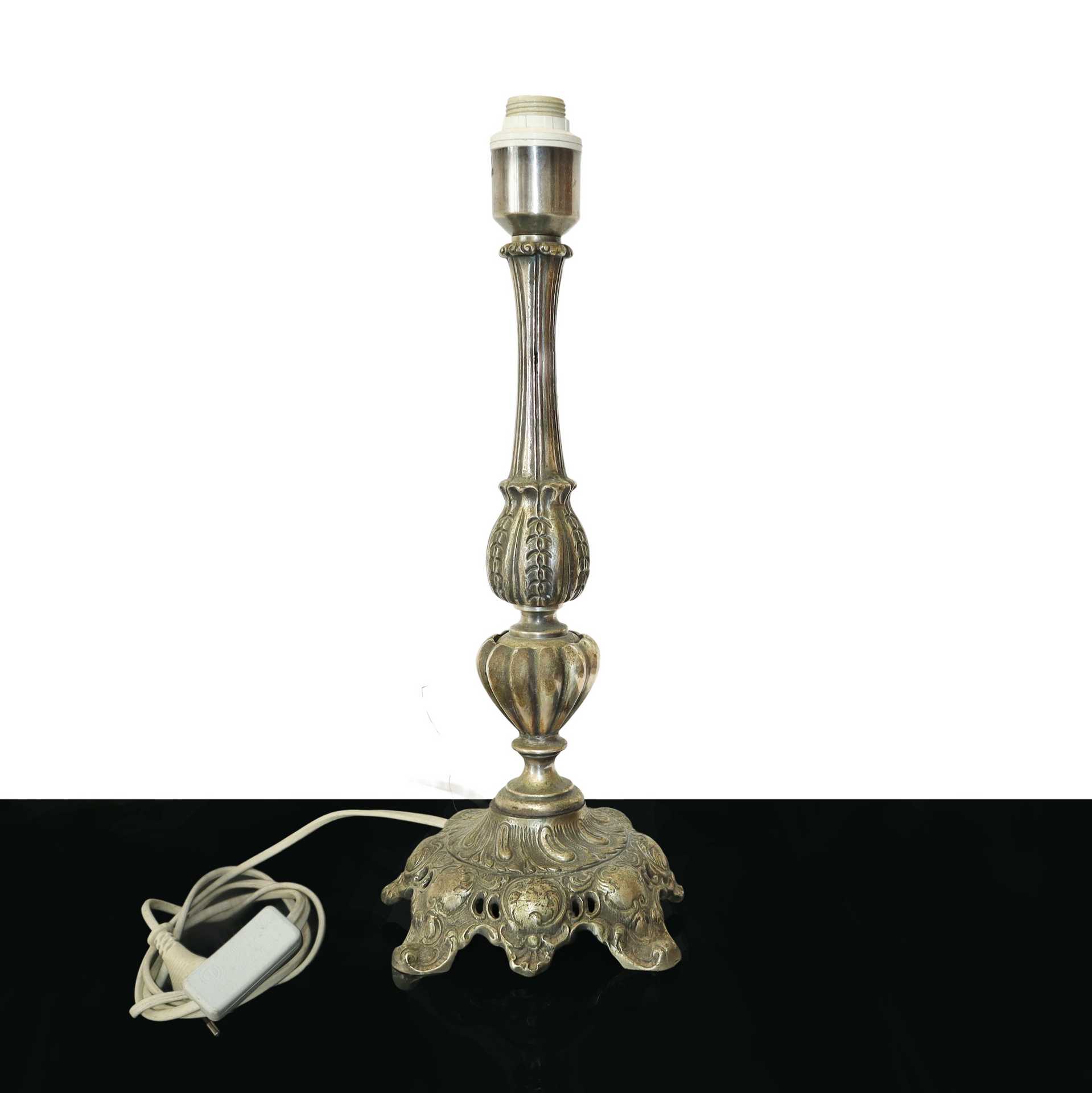 Lume monoforo elettrificato in metallo lavorato alla base h cm 40