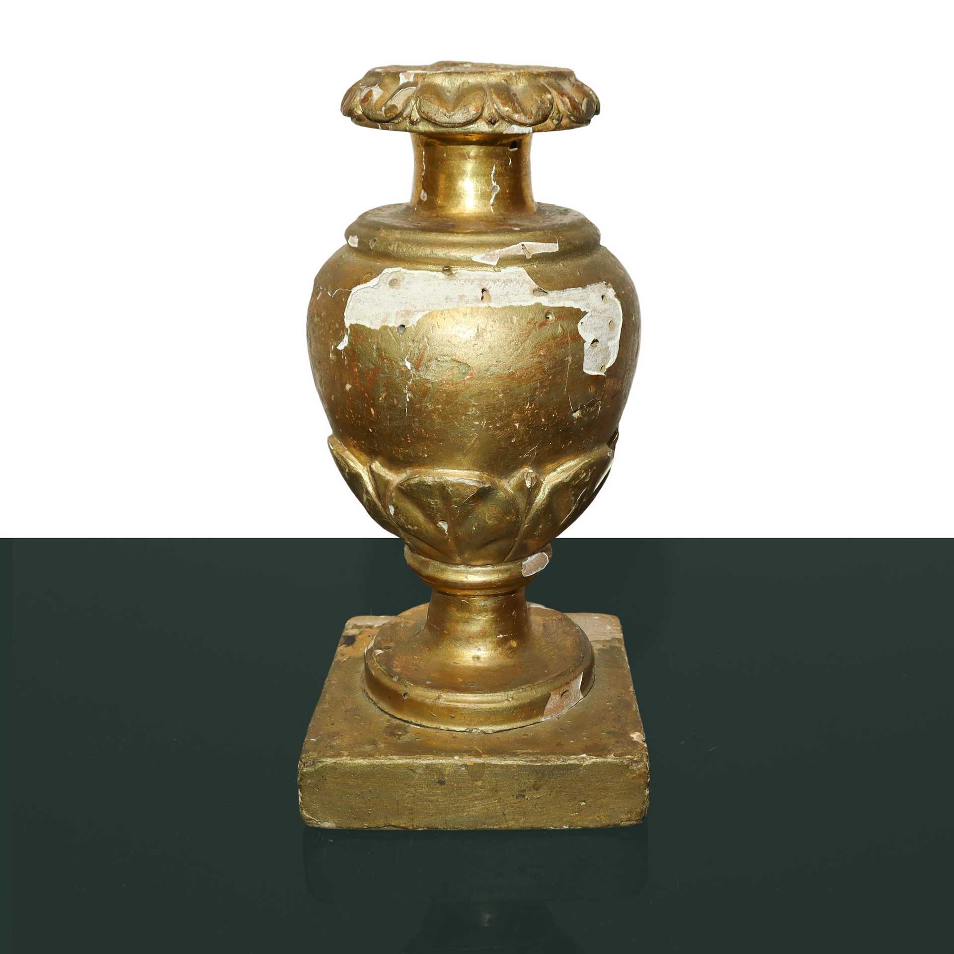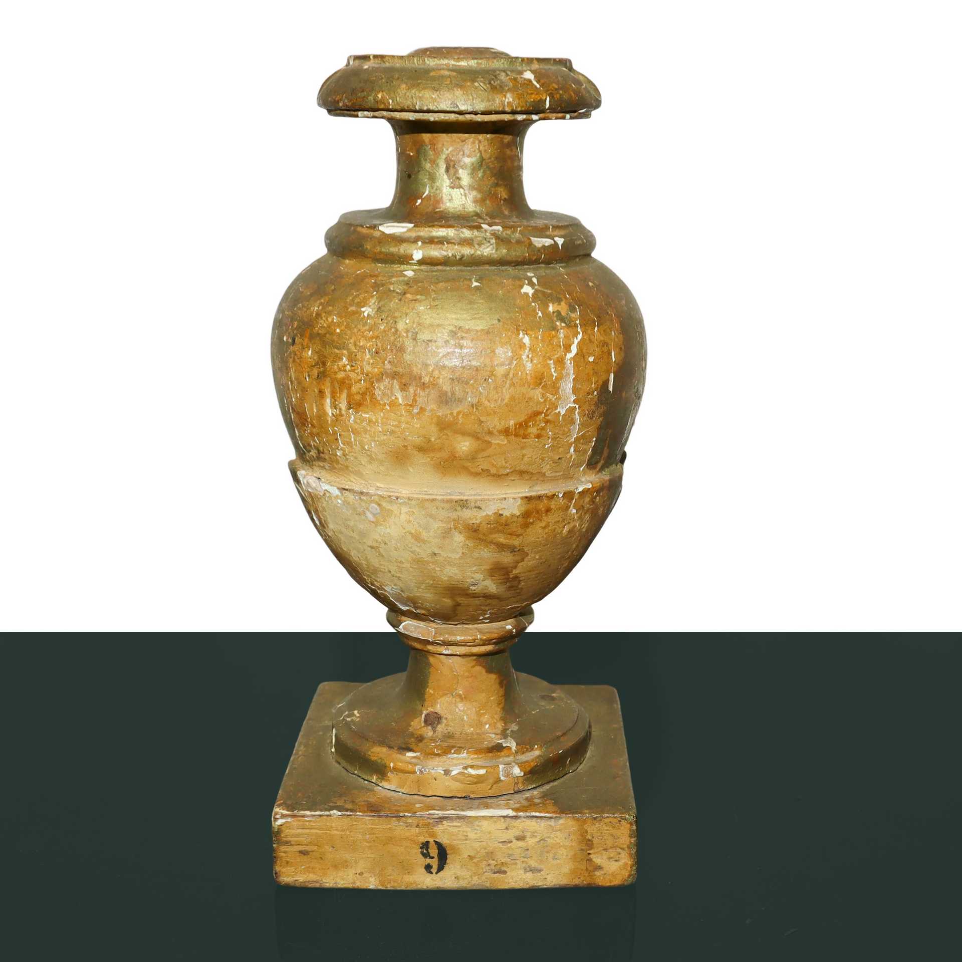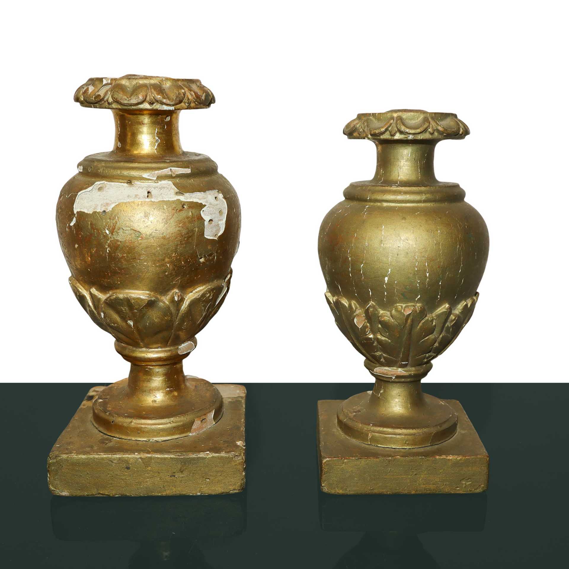 N°2 portapalme in legno dorato, 19° secolo h cm 23 Cadute di colore Cadute di colore