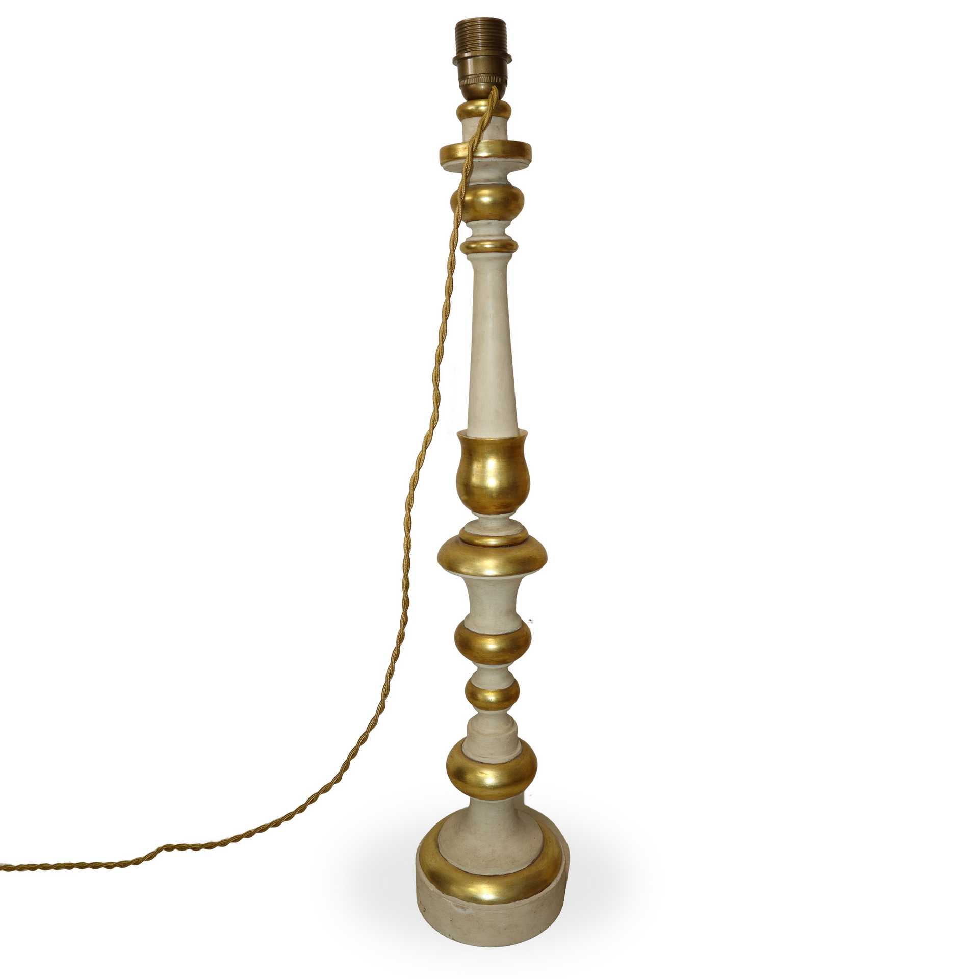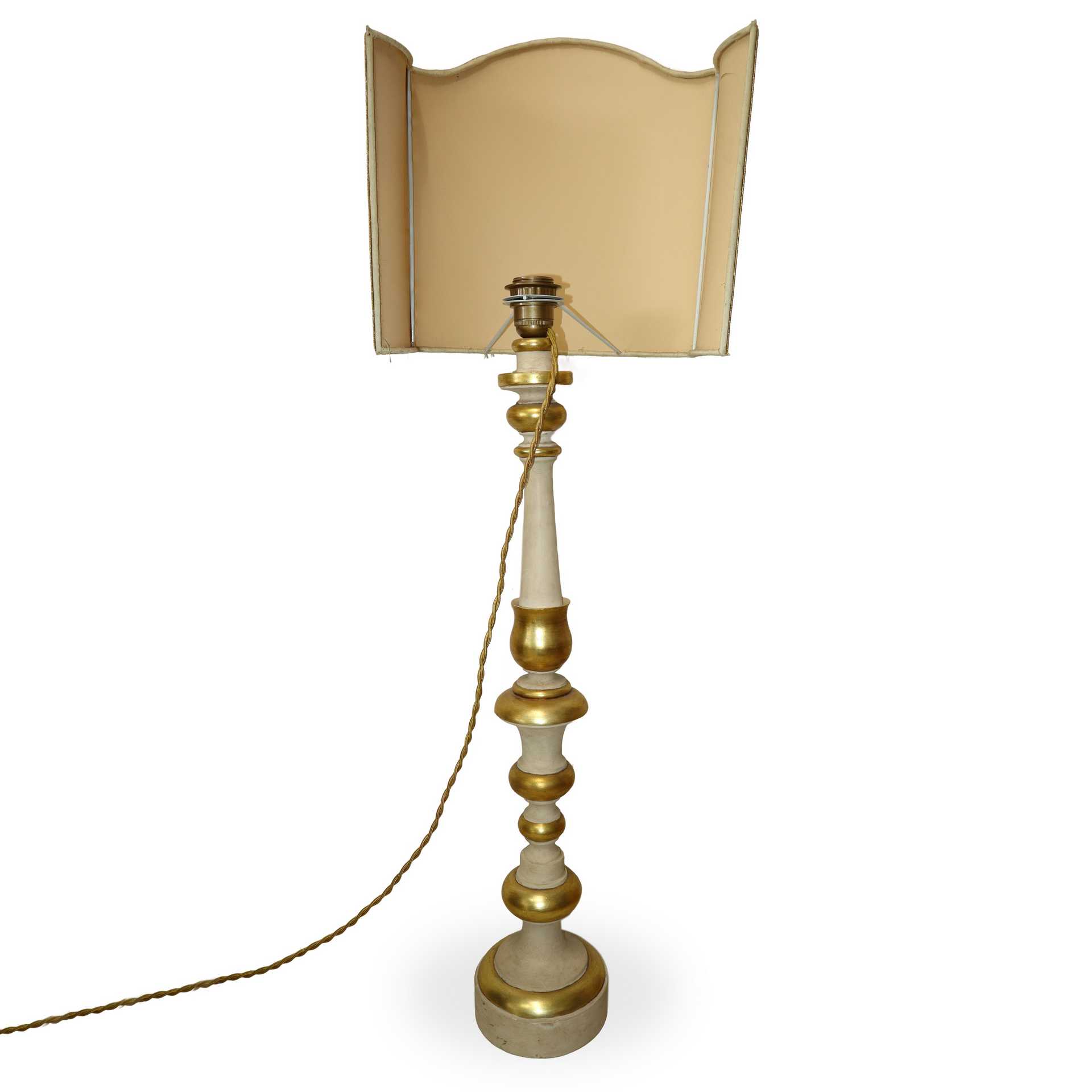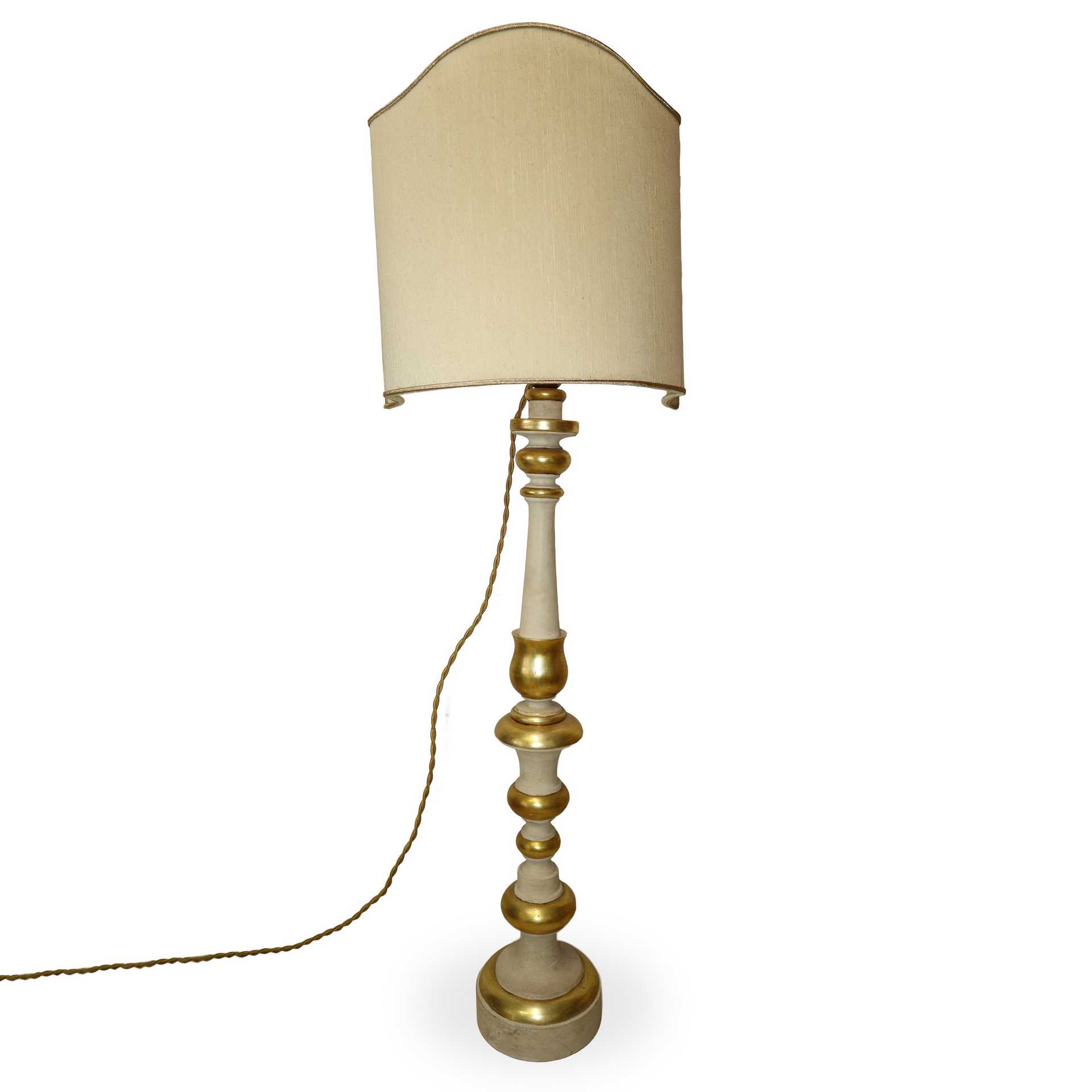 Candeliere laccato bianco e oro con ventolina paralume h cm 77