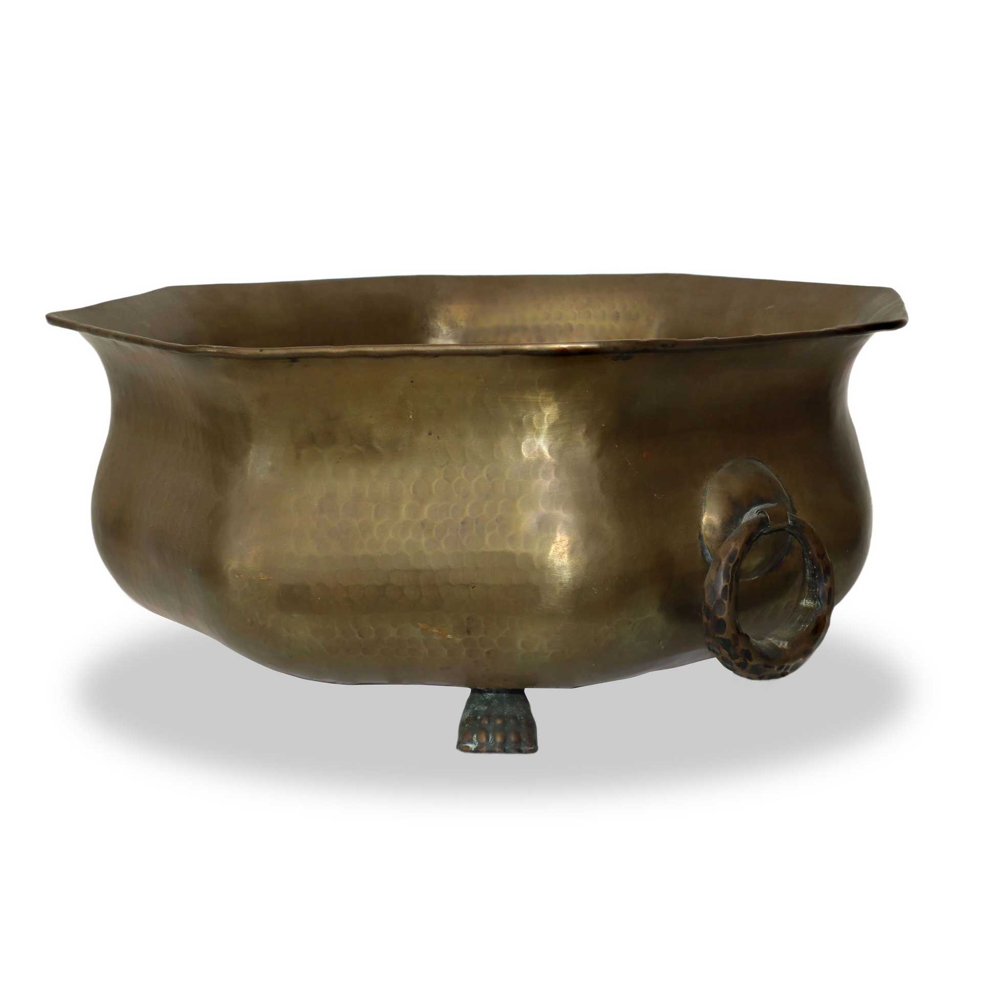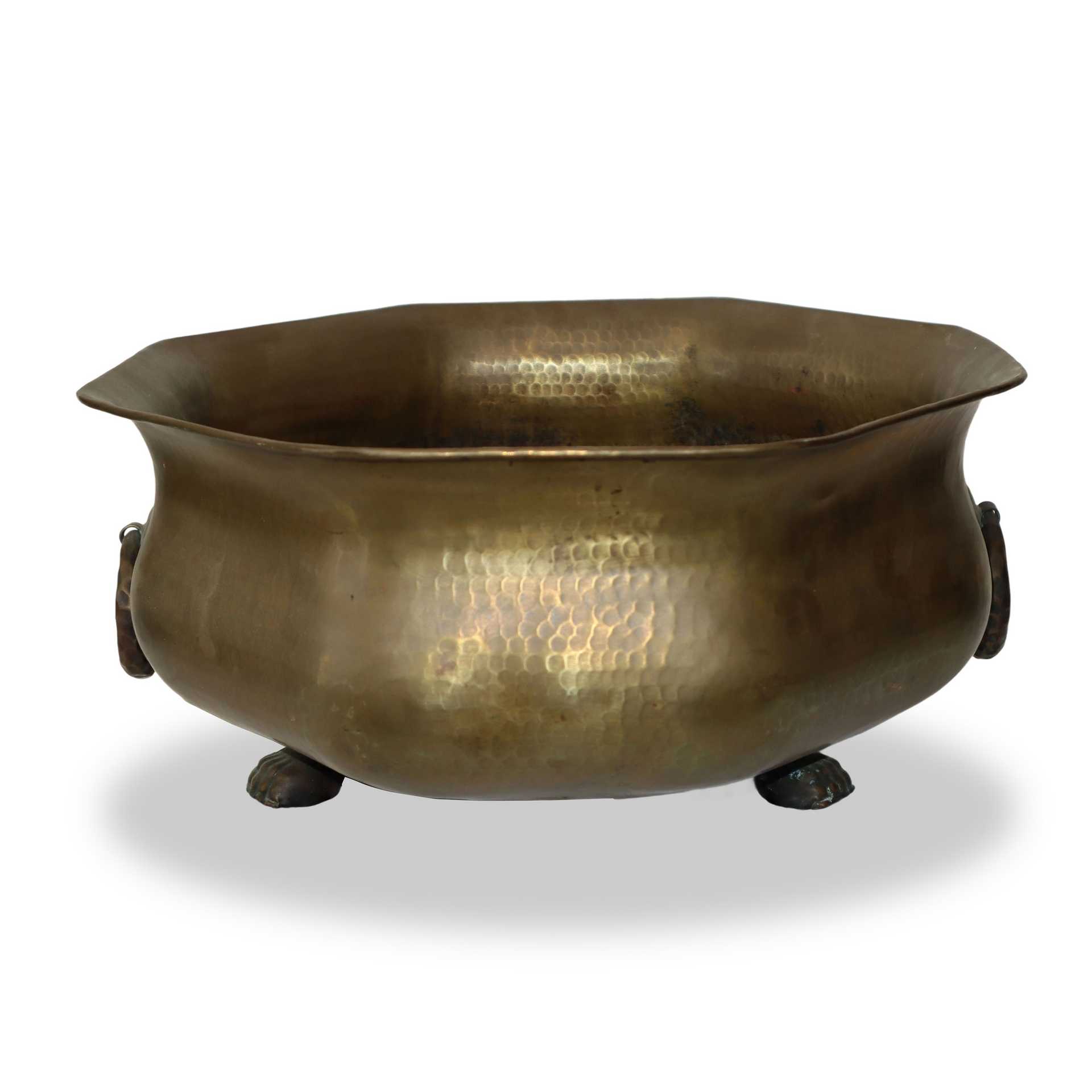 Grande cachepot ottagonale in metallo bronzato h cm 41X20