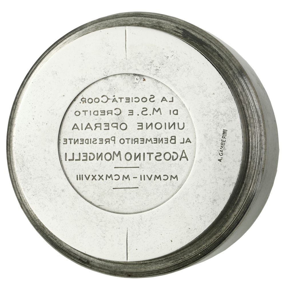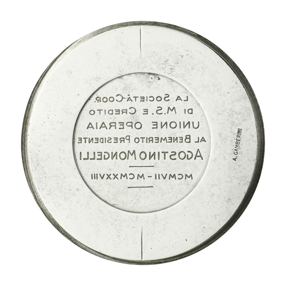 Lot 627 | N La Societa Coop Di M.S.E Credito Unione Operaia Al Benemerito Presidente Agostino Mongelli MXMVII-MCMXXVIII 66 x 36 mm