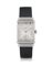 Cassa n. 630848 rettangolare in acciaio con anse coperte. Quadrante argentato con indici applicati e secondi al 6. Movimento di forma n. 837985 a carica manuale. Quadrante, cassa e movimento firmati. Completo di cinturino originale, estratto di registro.