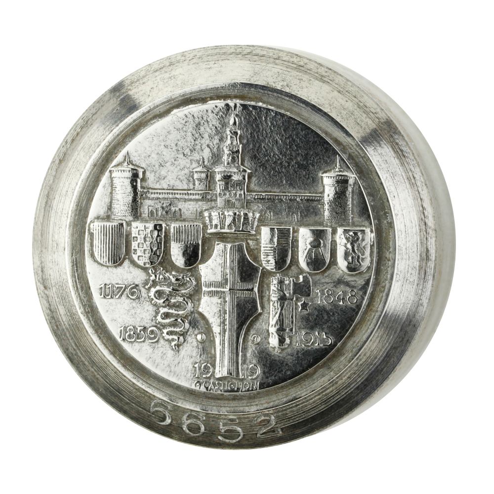 P Castello Sforzesco E Stemmi 1176-1848-1859-1915-1919 A. Castiglioni 41 x 41 mm