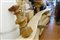 composta da due elementi curvilinei ognuno dei quali presenta base a gradini rastremati verso l'alto con parte centrale aggettante. La testa è anch'essa curvilinea con cornice a becco di civetta e pronunciatura centrale. Testa e base sono raccordate da tredici elementi a fusto con nodo al centro ed anelli geometrici quadrangolari sopra e dì sotto il nodo. Laccatura della base e del piede bianca , laccatura degli elementi in finto marmo nelle tonalità rosse, terra di Siena , grigio ed ocra.