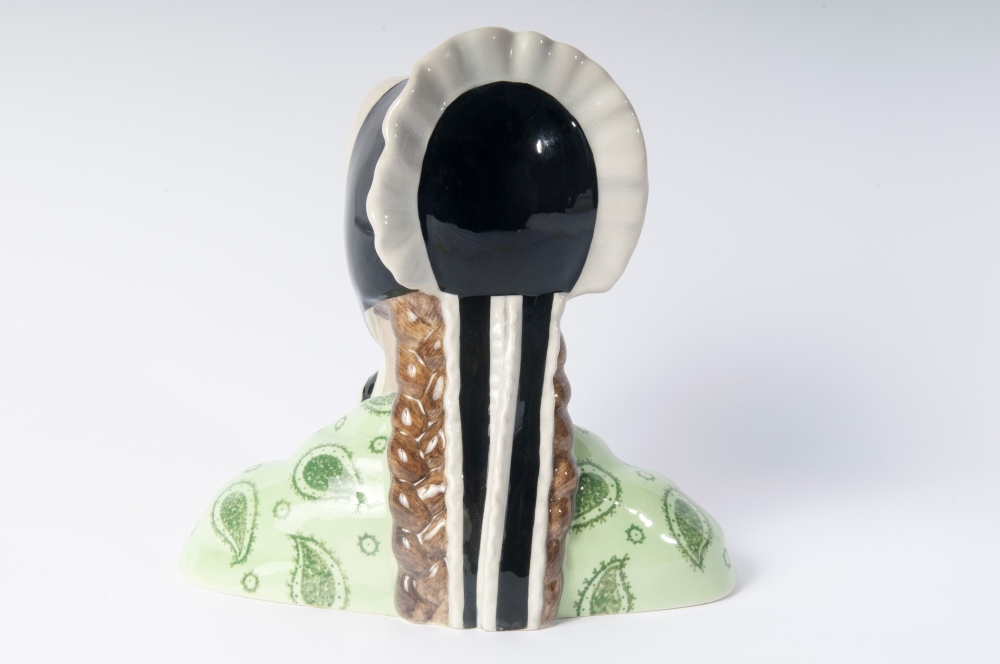 scultura a colaggio in ceramica policroma a tutto tondo.