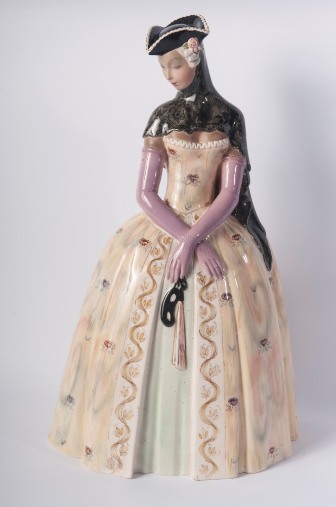 scultura a tutto tondo in ceramica policroma con formatura a colaggio.