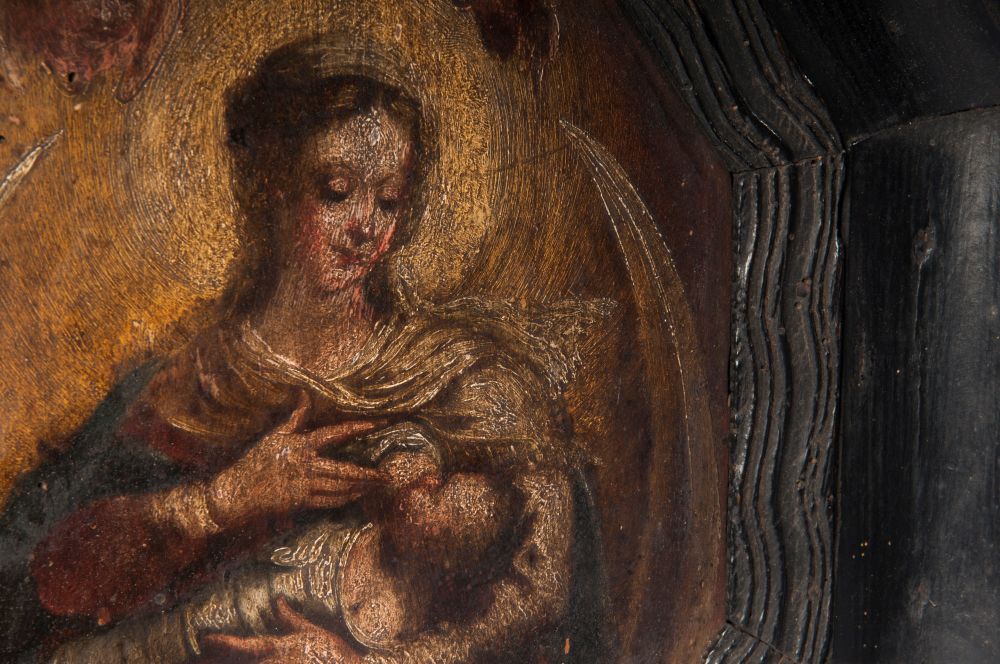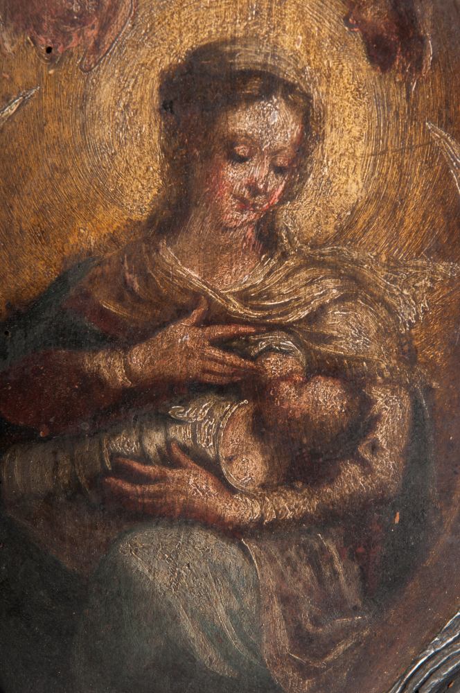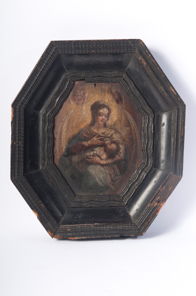 Madonna del latte XIX secolo dipinto ad olio su tavola 21 x 17 cm