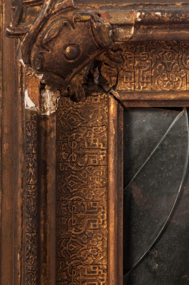 Stato di conservazione: diversi punti di cadute di colore e restauro sul fondo.