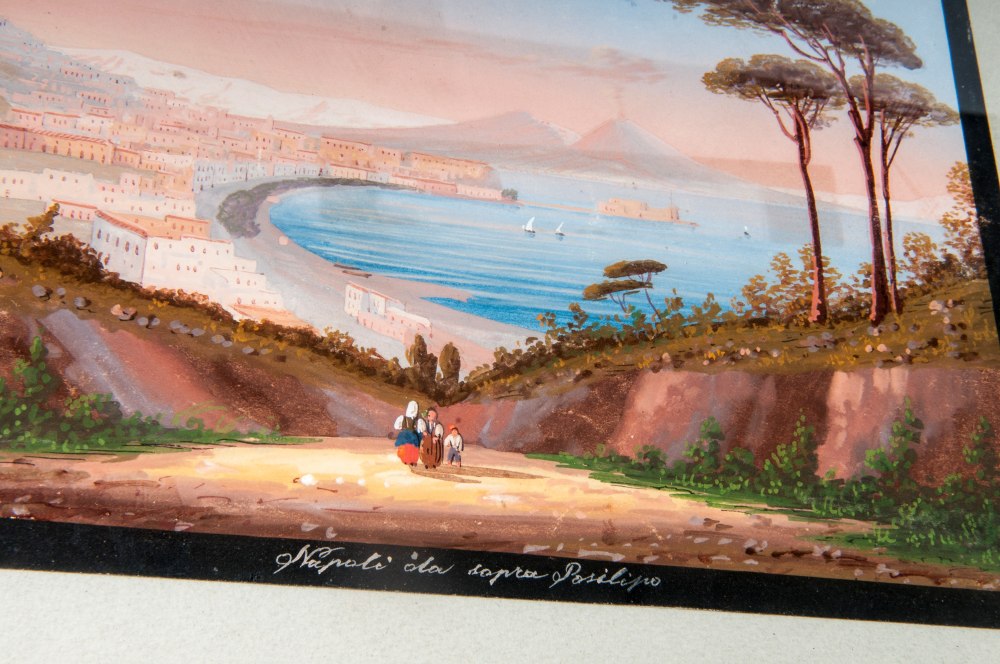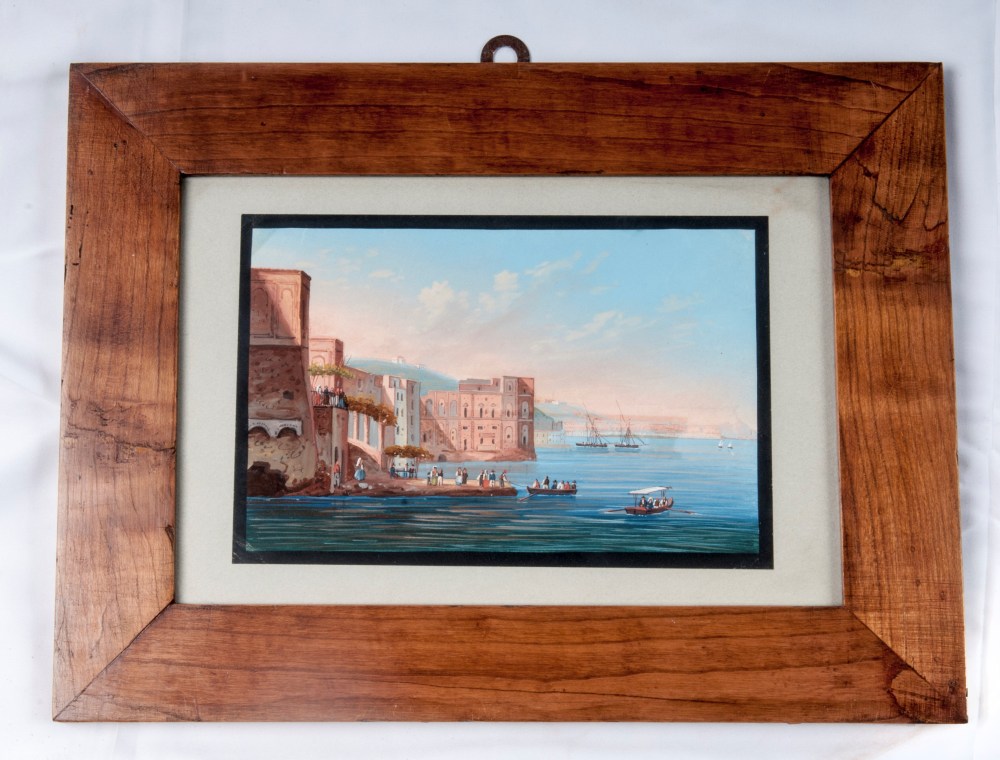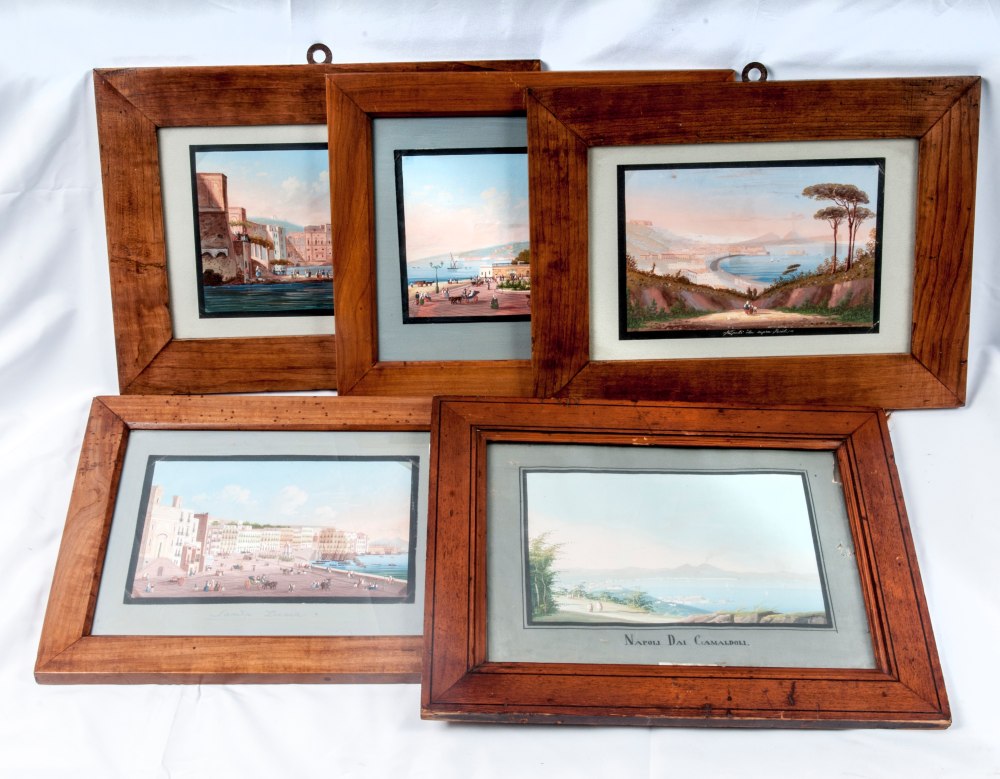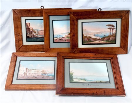 Lotto di cinque vedute di Napoli XIX secolo tempera su carta 15 x 23,5 cm