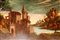 coppia di paesaggi con architetteture fine XIX inizi XX secolo dipinto olio tela 64 x 115 cm