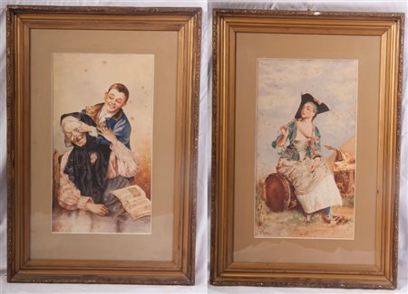 Coppia di acquarelli su carta fine XIX inizi XX secolo 49 x 26 cm