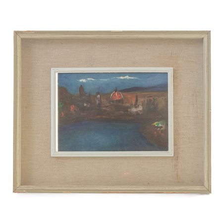 ALDO NAVA (1927 - 1980) Veduta di Firenze 1961 dipinto ad olio cartone 17,5 x 24,5 cm
