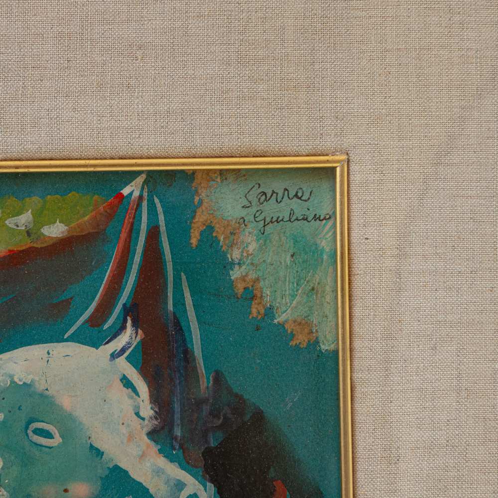 SARRA MANLIO (1909 - 1986) Il toro e la chitarra dipinto ad acrilico su cartone 19,5 x 25 cm