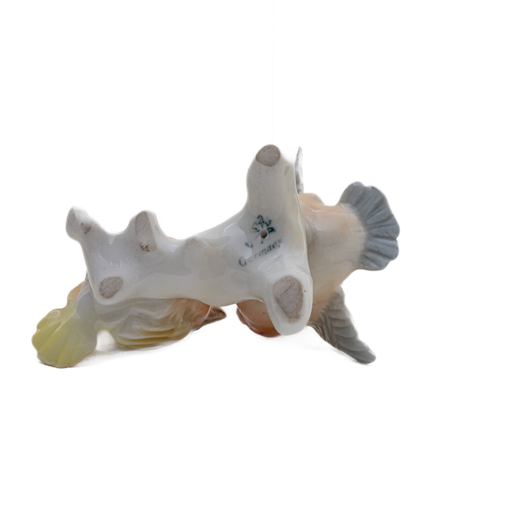 Gruppo di due uccellini in porcellana policroma 7 x 8,5 x 5 cm
