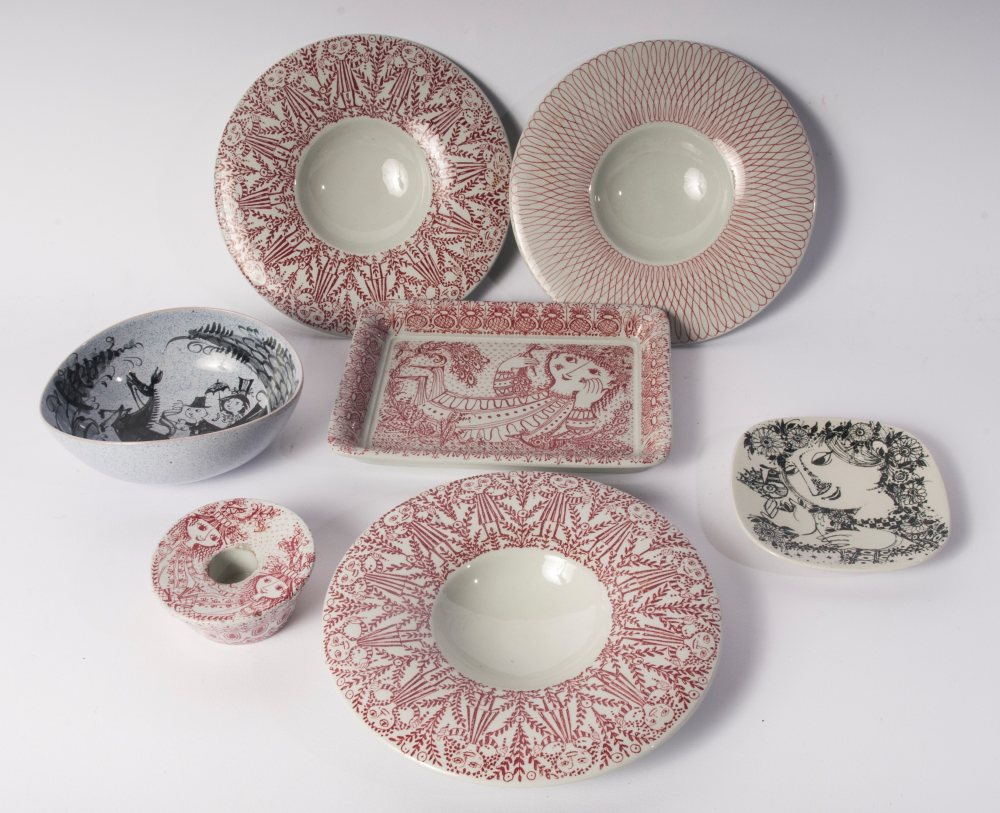 BJORN WIINBLAD (1918 - 2006) Lotto di sette pezzi in ceramica anni '70