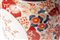 corpo del vaso leggermente rastremato verso il basso, corto collo verticale e piede da appoggio anulare con fondo ribassato. Decoro floreale Imari su fondo bianco nei tre colori rosso, blu e oro, sul corpo due ampie riserve a fondo bianco a motivi fitomorfi e fascia a palmette blu lungo il bordo inferiore.