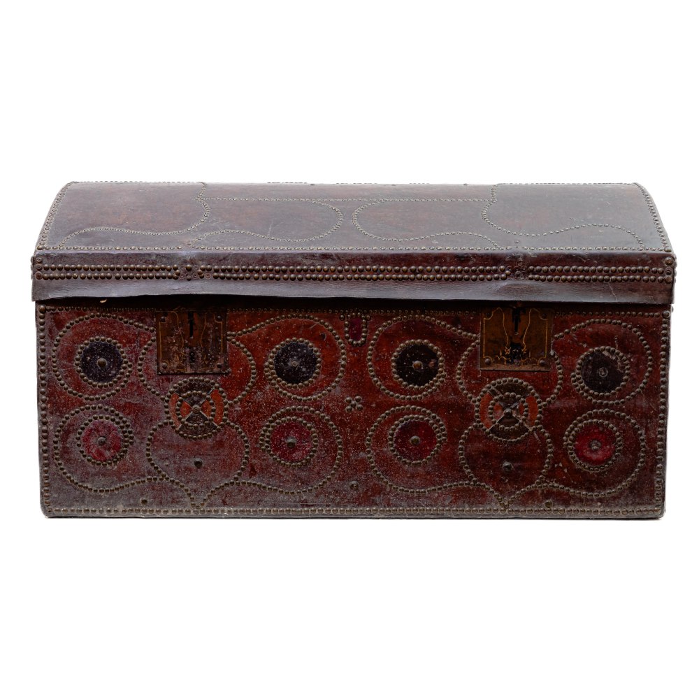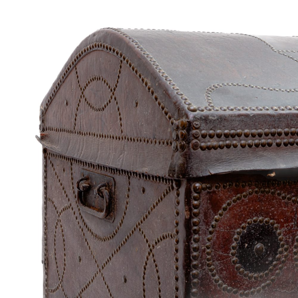 Baule in cuoio e legno, arte indo/portoghese, inizio XIX secolo 57 x 106 x 57 cm
