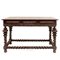 dei quali solamente tre veri , con quattro gambe tornite rastremate verso il basso e raccordate alla base, bordo intagliato e fascia sotto piano scolpita ed incisa a motivi geometrici con finiture in ottone. Manifattura portoghese.