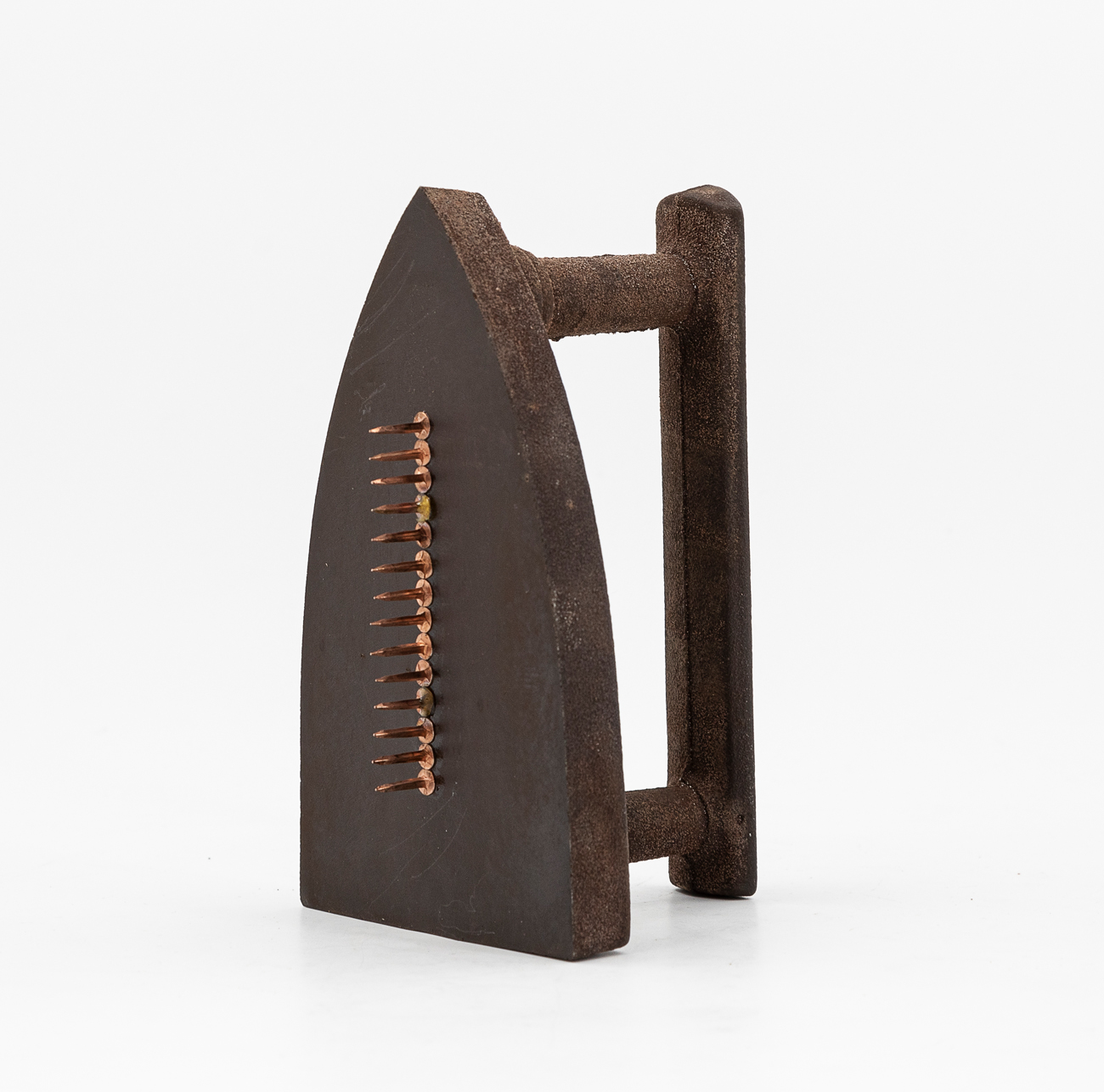 Opera multipla realizzata con ferro da stiro in ghisa e chiodi