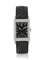 Cassa n. 100060 rettangolare in acciaio. Quadrante nero con indici e numero arabo smaltati in bianco. Movimento di forma a carica manuale. Quadrante e movimento firmati, cassa numerata.