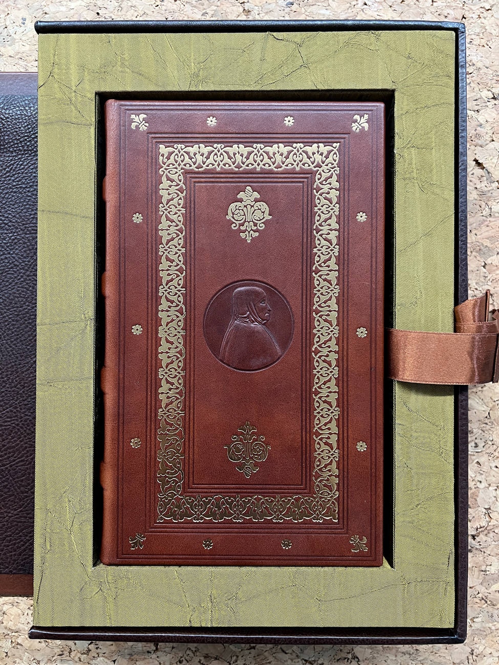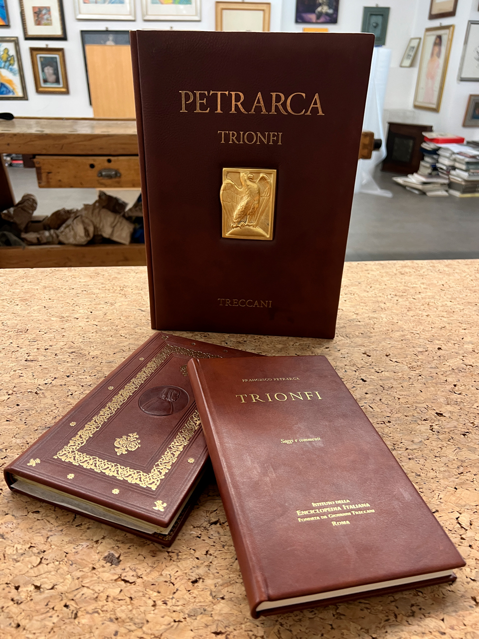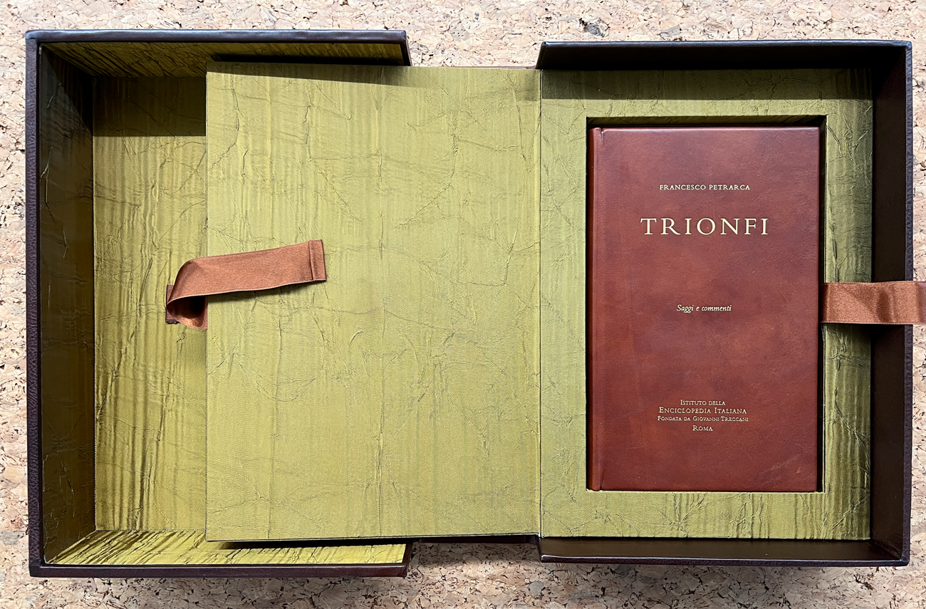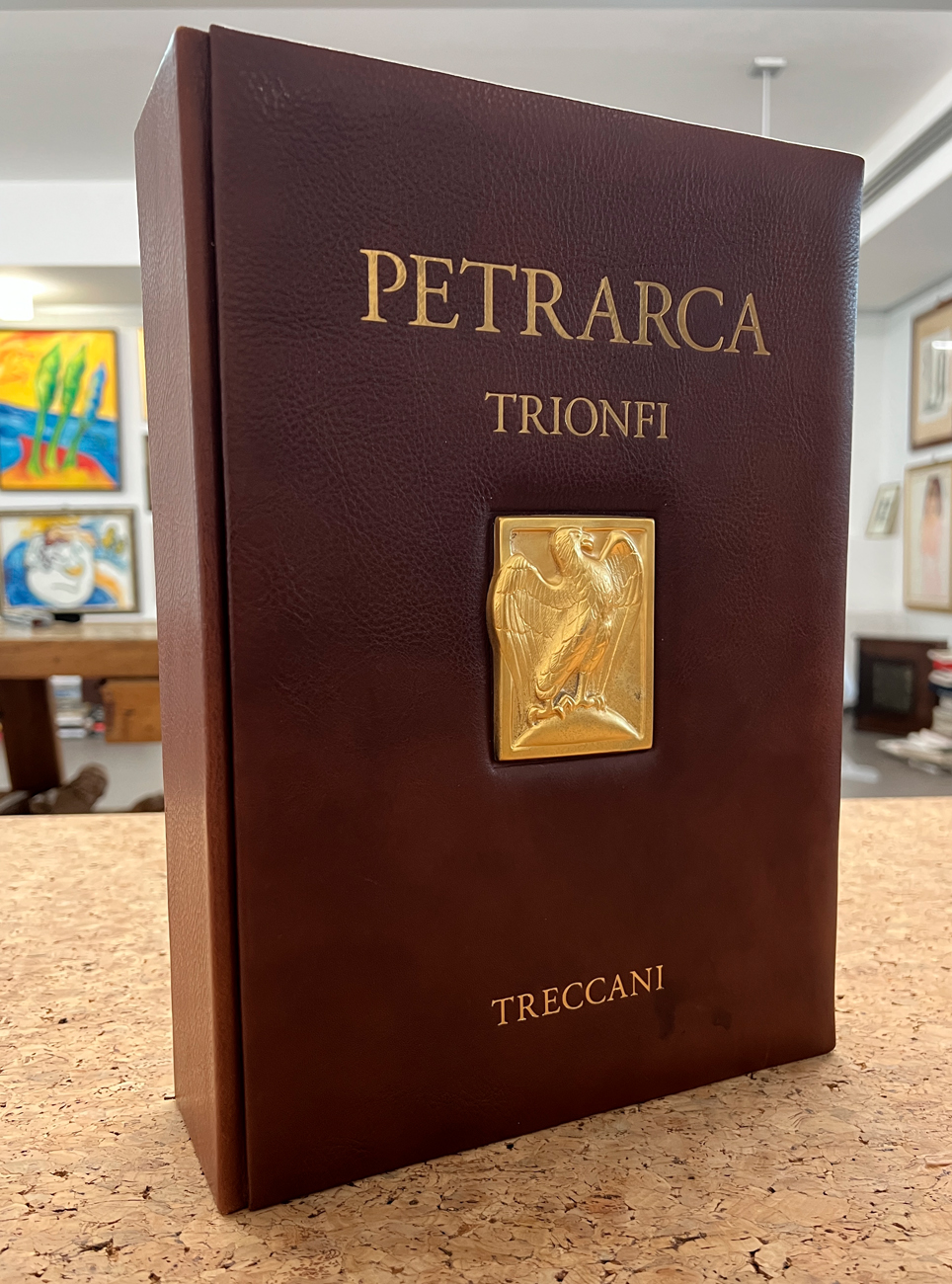 Splendida edizione d'arte composta da un cofanetto contenente un volume recante l'edizione in facsimile dei 'Trionfi' di Francesco Petrarca e un ulteriore volume con saggi e commenti