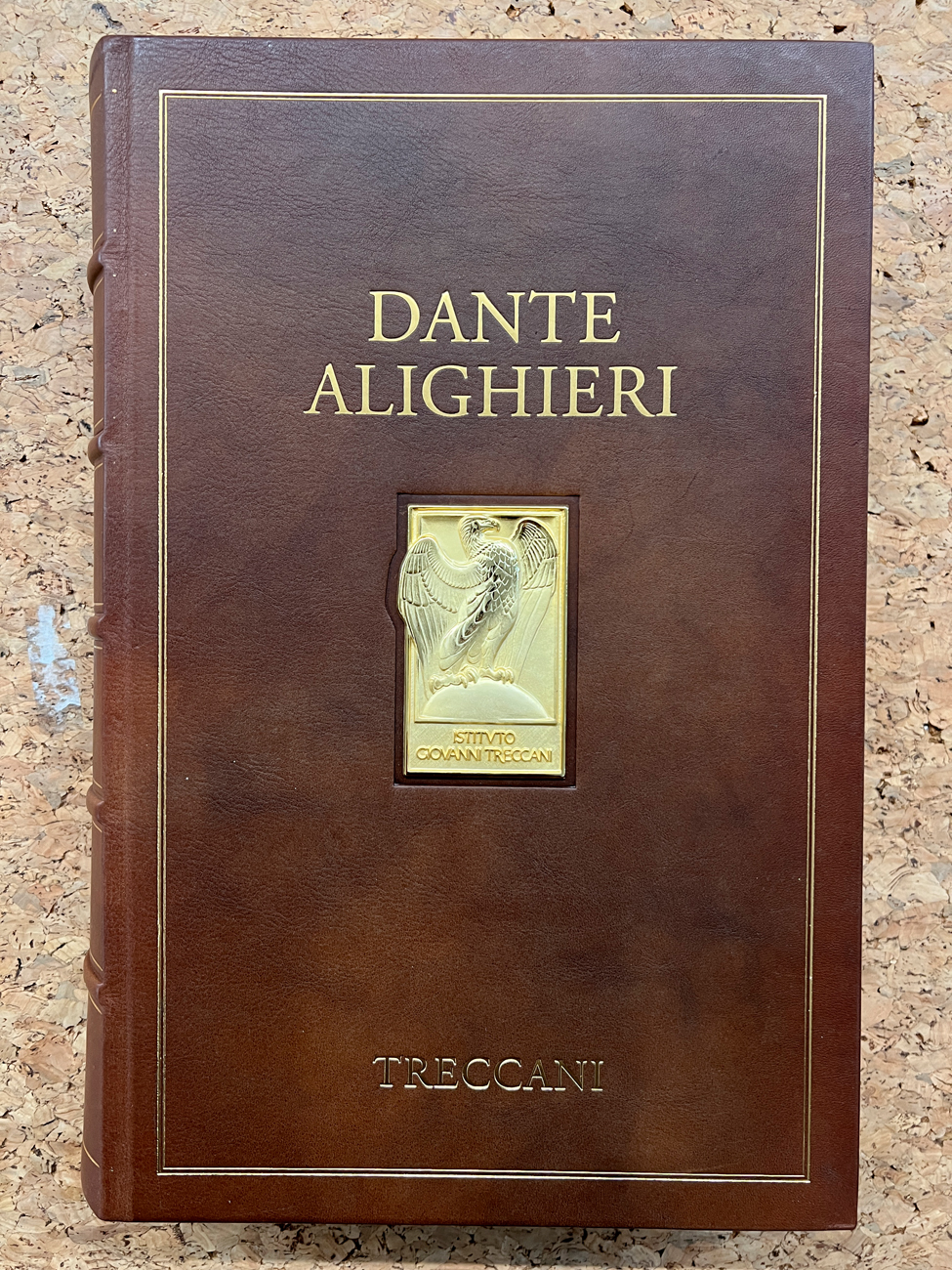 Il volume reca al piatto anteriore un prezioso bassorilievo raffigurante il simbolo dell'Istituto Giovannin Treccani