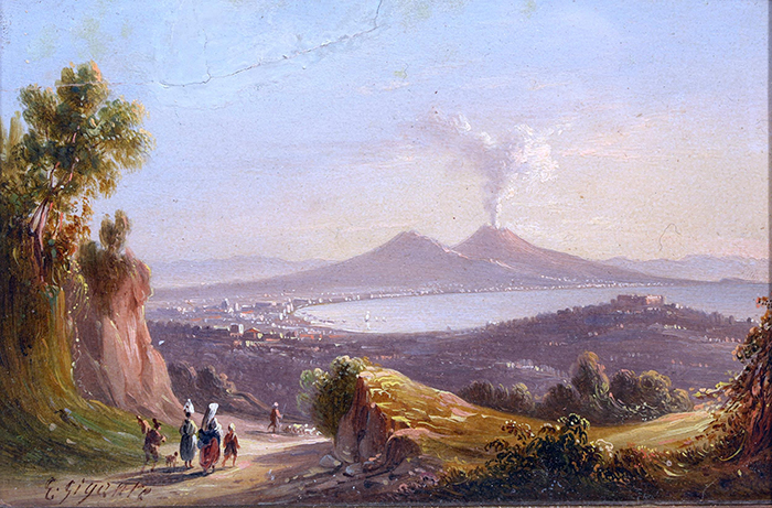Gigante Ercole (Napoli 1815 - 1860) Veduta di Napoli da Posillipo olio su carta, cm 12x18 firmato in basso a sinistra: E. Gigante Provenienza: Gall. Giosi, Napoli; coll. privata,Na
