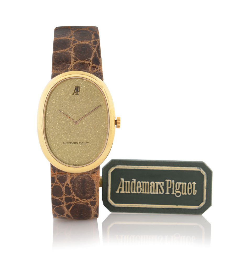 C. elliptical, 18K yellow gold. D. matt gold. M. manual winding. Dial, case and movement signed. Accompanied by Audemars Piguet strap and yellow gold buckle.