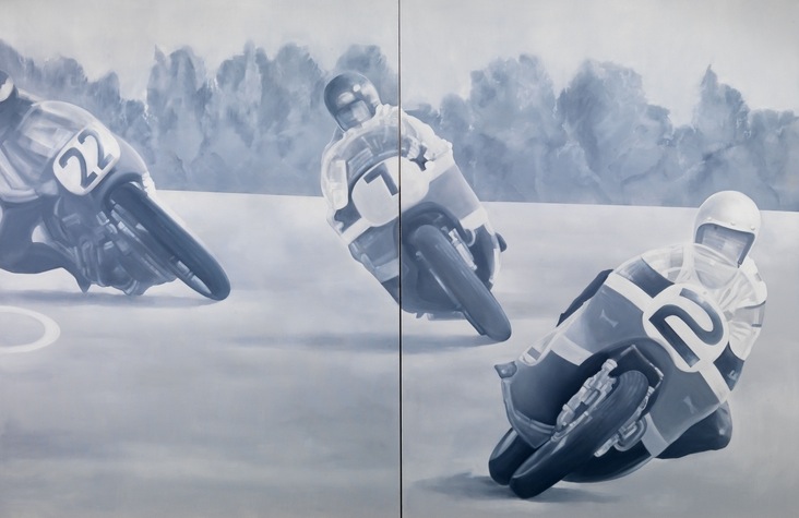 Gian Marco Montesano (Torino 1949) EROICHE SFIDE dittico olio su tela, cm 200x300 sul retro: firmato, titolato e datato eseguito nel 2003
