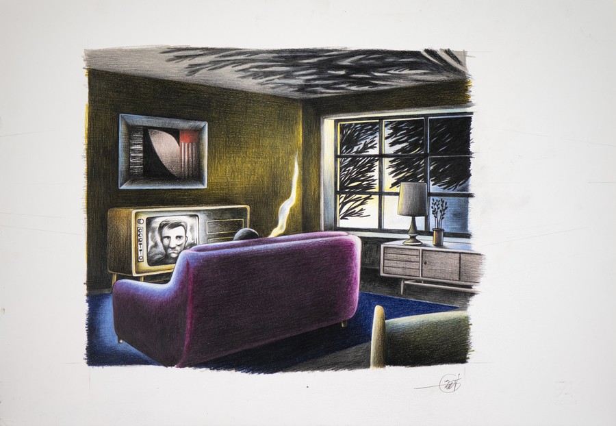 Giandelli Gabriella (n. 1963) Omaggio a Raymond Carver. disegno, acquerello. Cm 33,00 x 48,00. Opera firmata in basso a destra