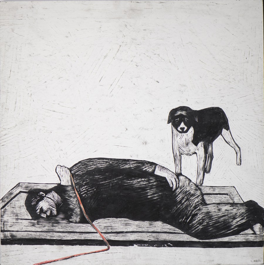 MASSI SIMONE Scene dentro di noi. 2013. China su carta. Cm 30,00 x 30,00. Firma in basso a destra
