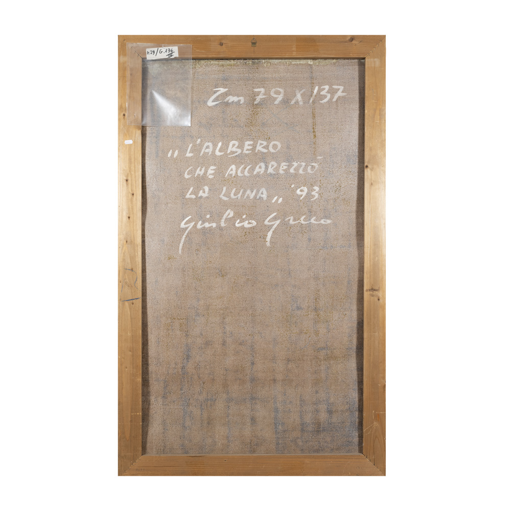 "L'albero che accarezza la luna", 1993, pittura su tela, firmata, datata e titolata sul retro, entro cornice.