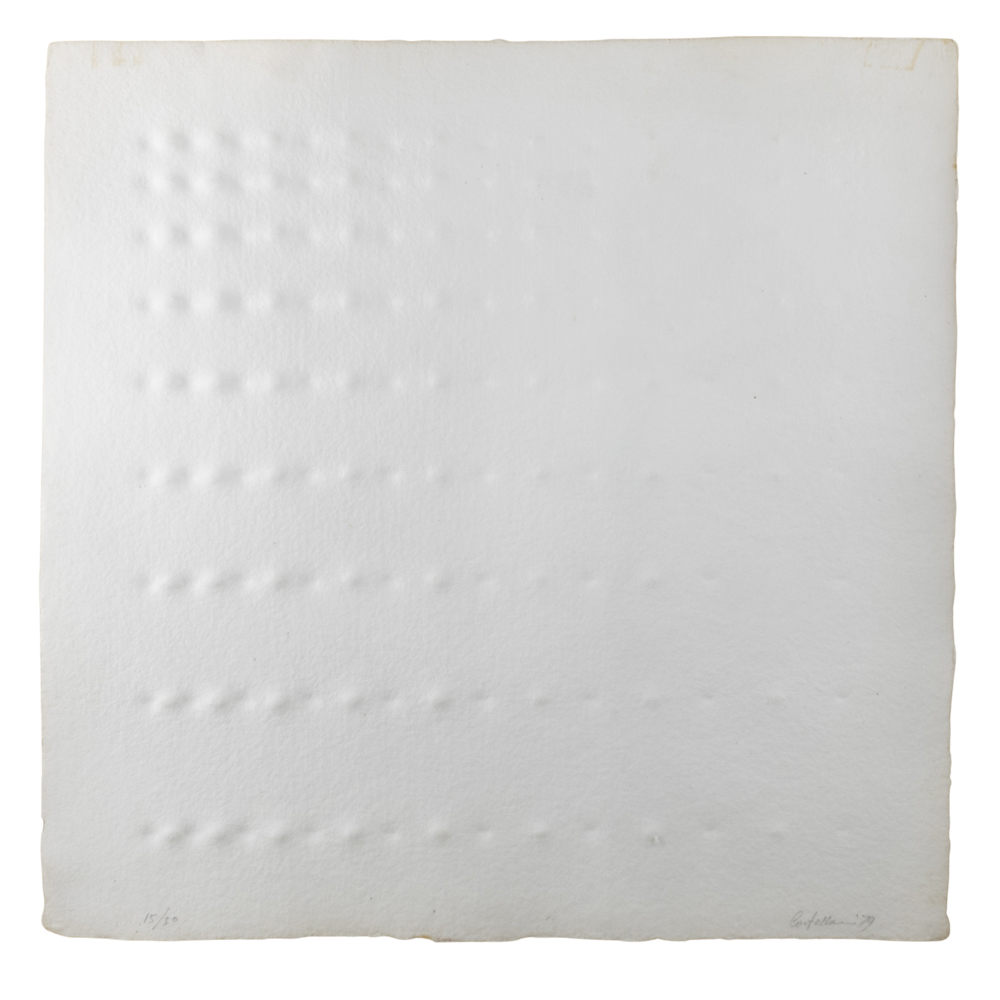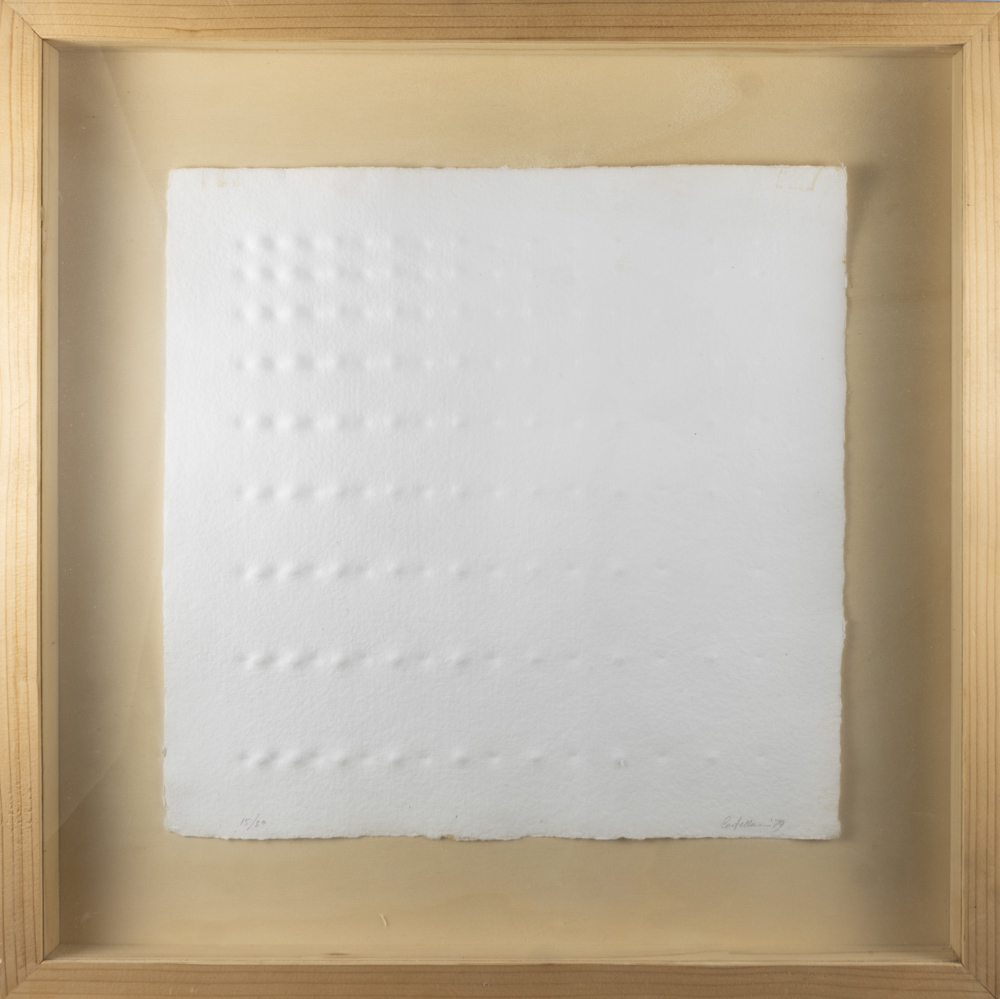 "Rilievo bianco", 1979, impressione a secco, es. 15/50, firmato e datato in basso a destra, entro cornice.