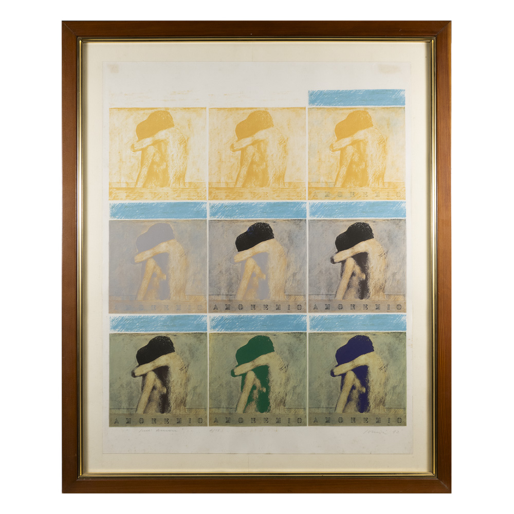 "Nell'amore", 1972, litografia a colori, es. 6/15, firmata e datata in basso a destra, entro cornice