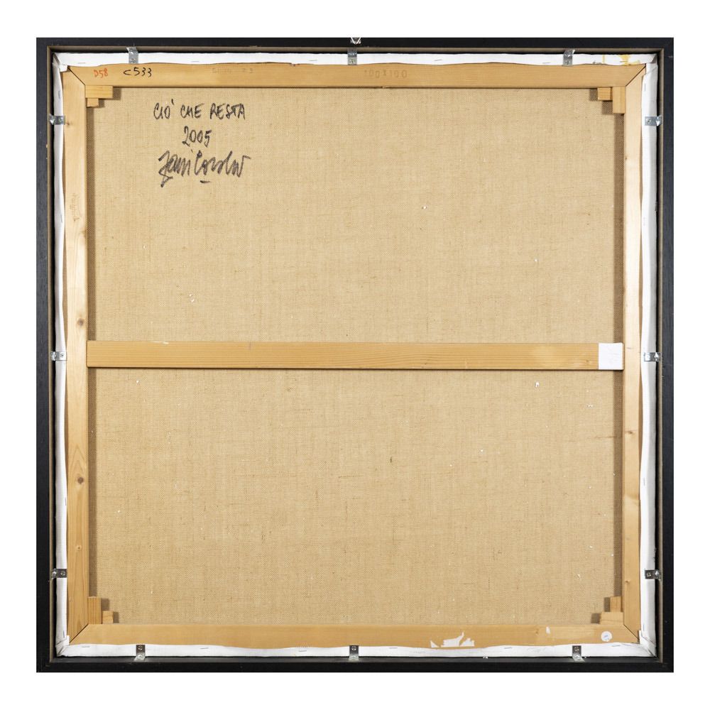 "Ciò che resta", 2005, tecnica mista su tela, firmata in basso al centro, firmata, datata e titolata sul retro, entro cornice.