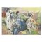 "Cinque figure", olio su tavola, firmato in basso a destra, entro cornice