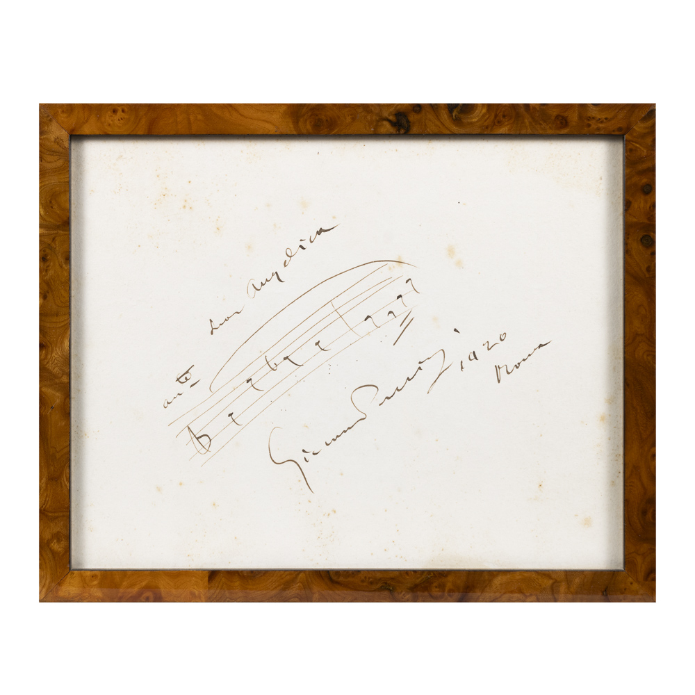 piccolo omaggio con lo spartito dell'Opera "Suor Angelica", 1920, firmato e datato, entro cornice