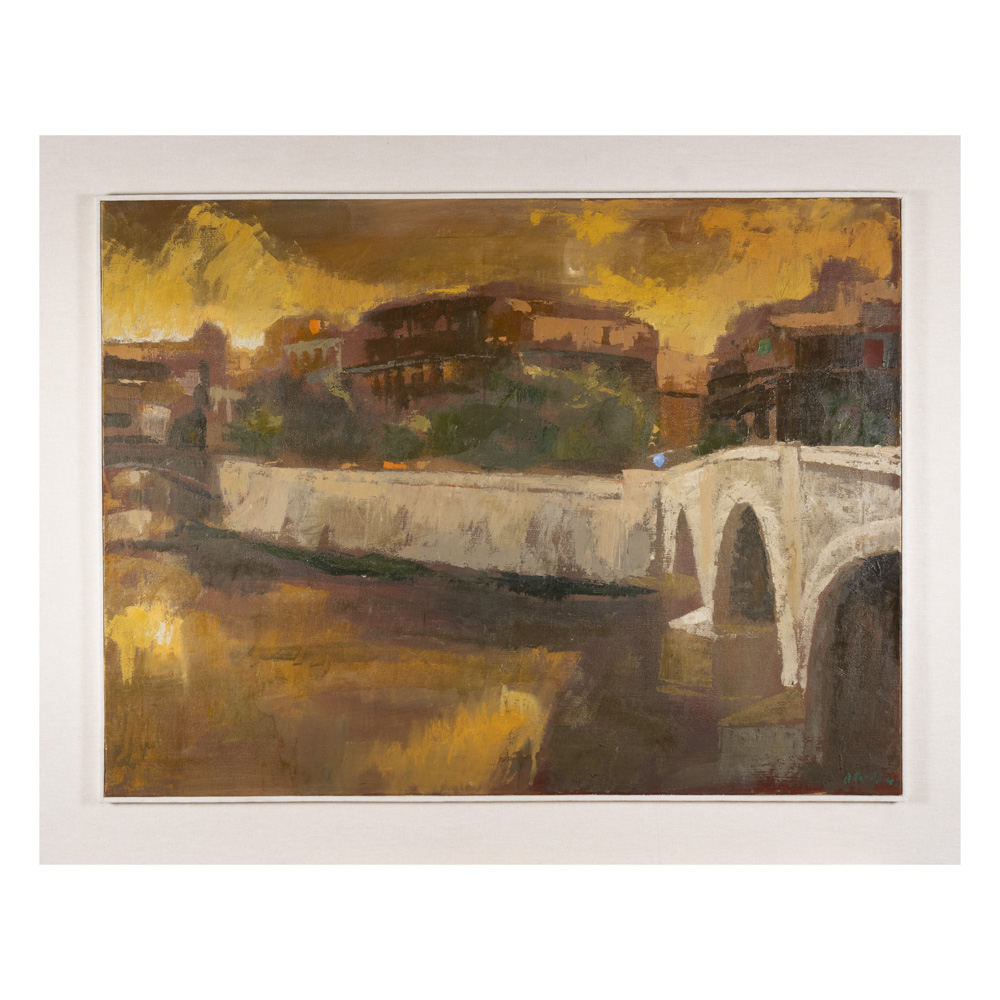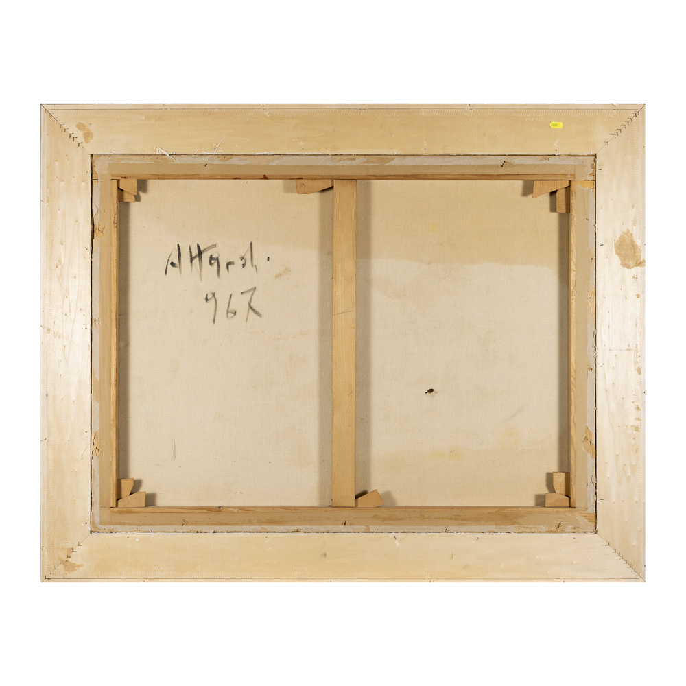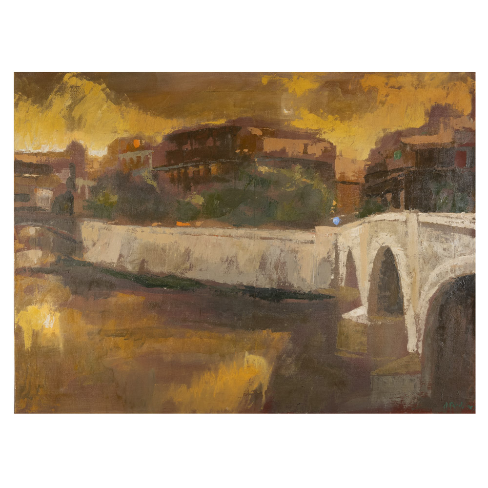 "Paesaggio romano", 1967, olio su tela, firmato in basso a destra, firmato e datato sul retro, entro cornice