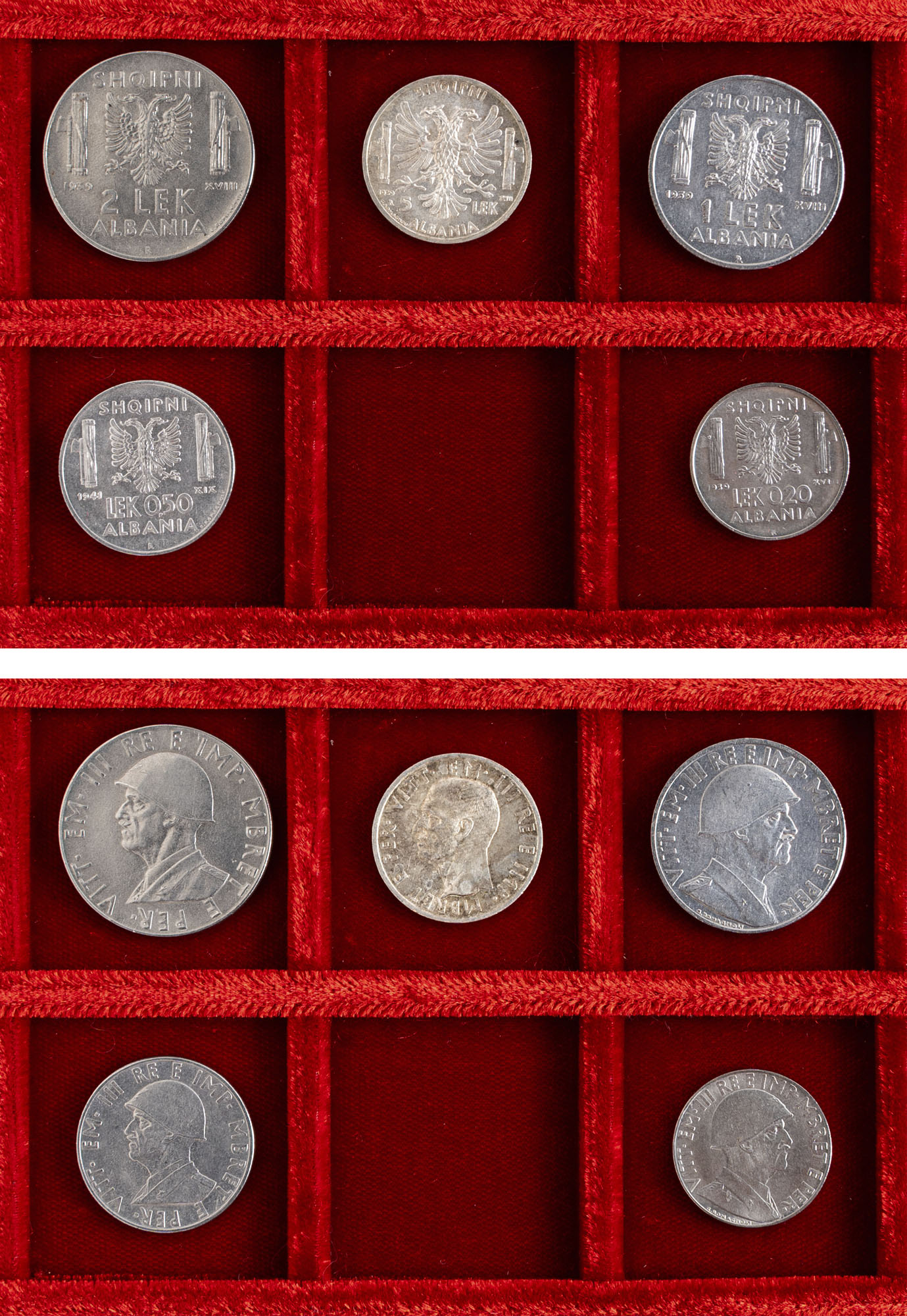 VITTORIO EMANUELE III - Albania (1939-1943) - Lotto di 5 monete.Vari metalli, di cui argento 5,00 gr.Nomisma 1448, 1450, 1454, 1460, 1462Conservazioni mediamente buone, da BB-SPL a q.FDC