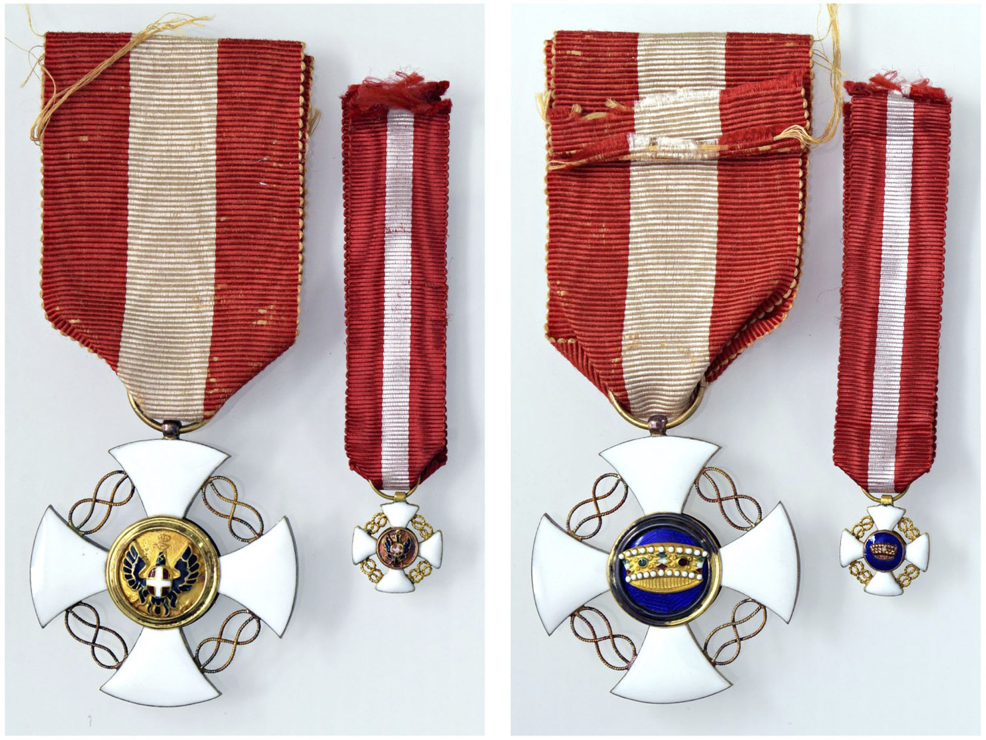 REGNO D'ITALIA - Medaglia Cavaliere Ordine della Corona d'Italia.Vari materiali e smalto.In lotto con medaglia mignon. Complete di nastrini (in discreto stato). Smalti integri.SPL