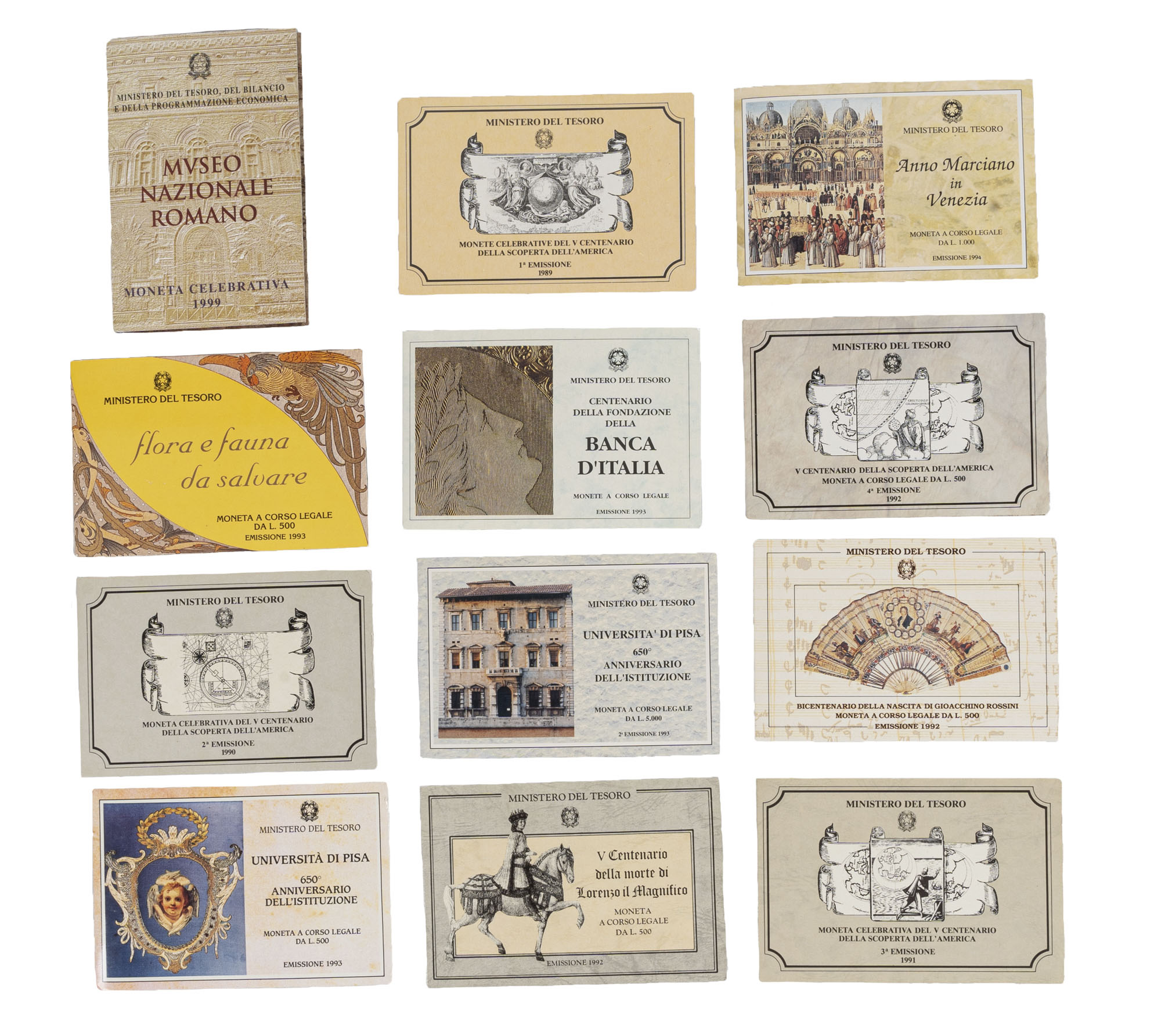 REPUBBLICA ITALIANA - Lotto di 12 emissioni celebrative dal 1989 al 1999.