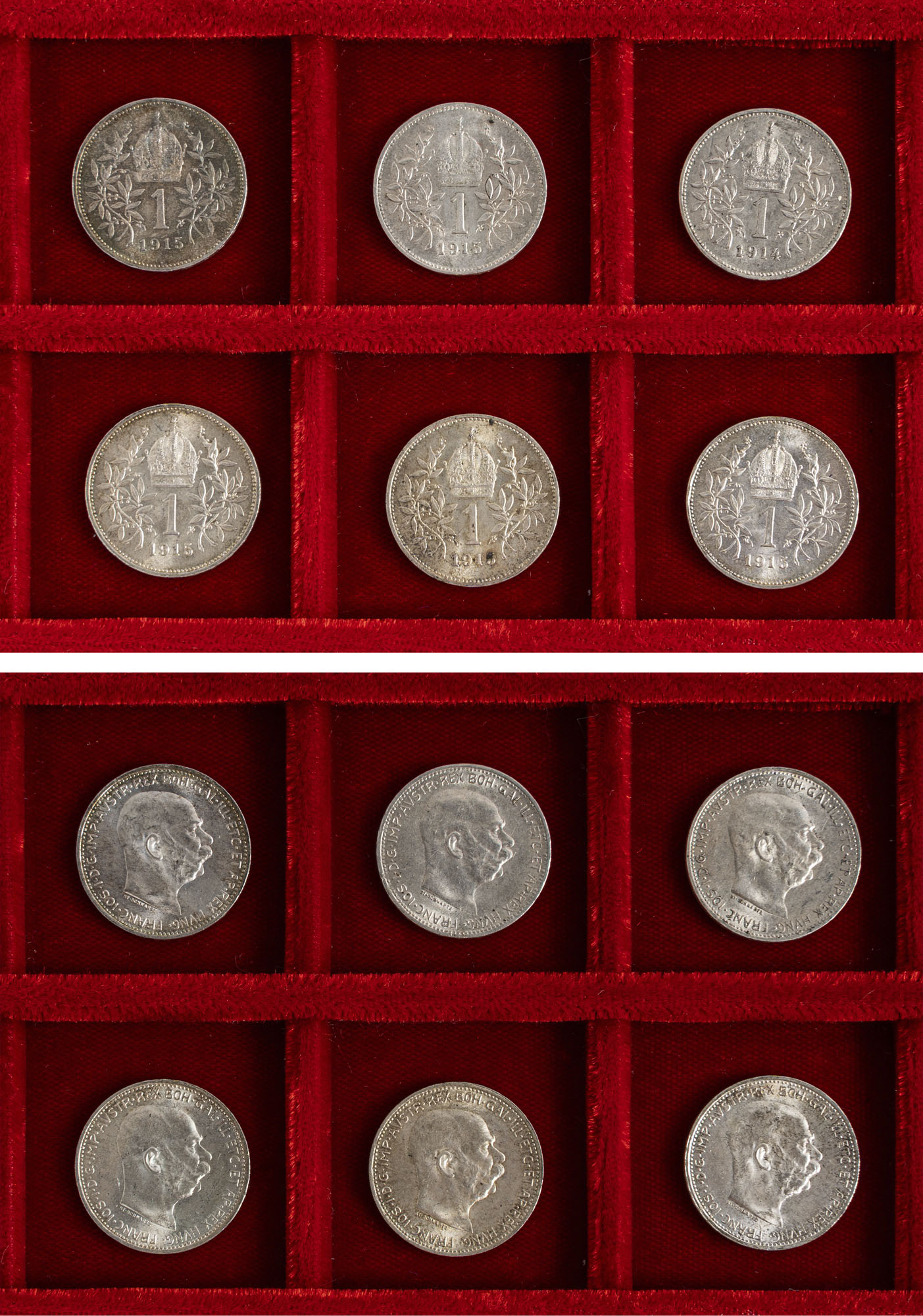 AUSTRIA - FRANCESCO GIUSEPPE (1848-1916) - Lotto 6 monete da 1 corona.