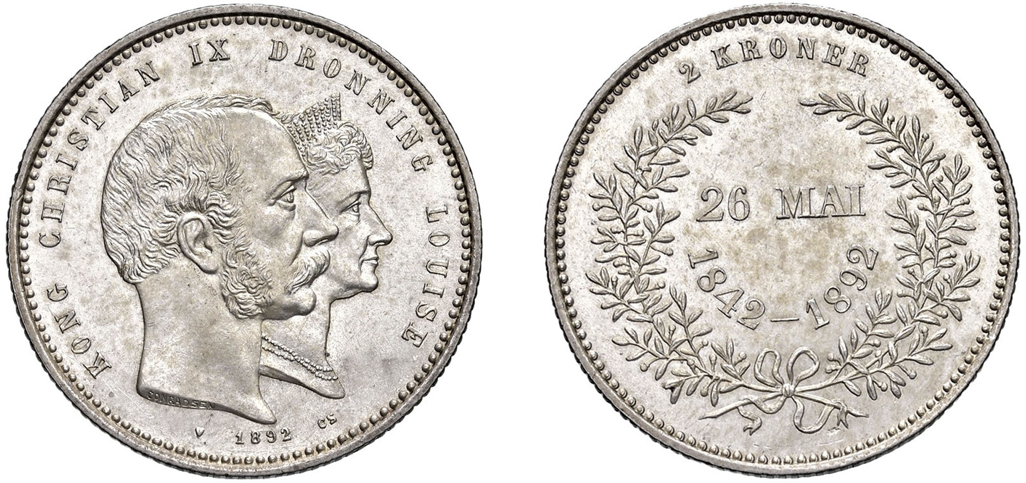Lot 217 | DANIMARCA - Christian IX (1863-1906) - 2 kroner 1892, 50° anniversario di matrimonio.