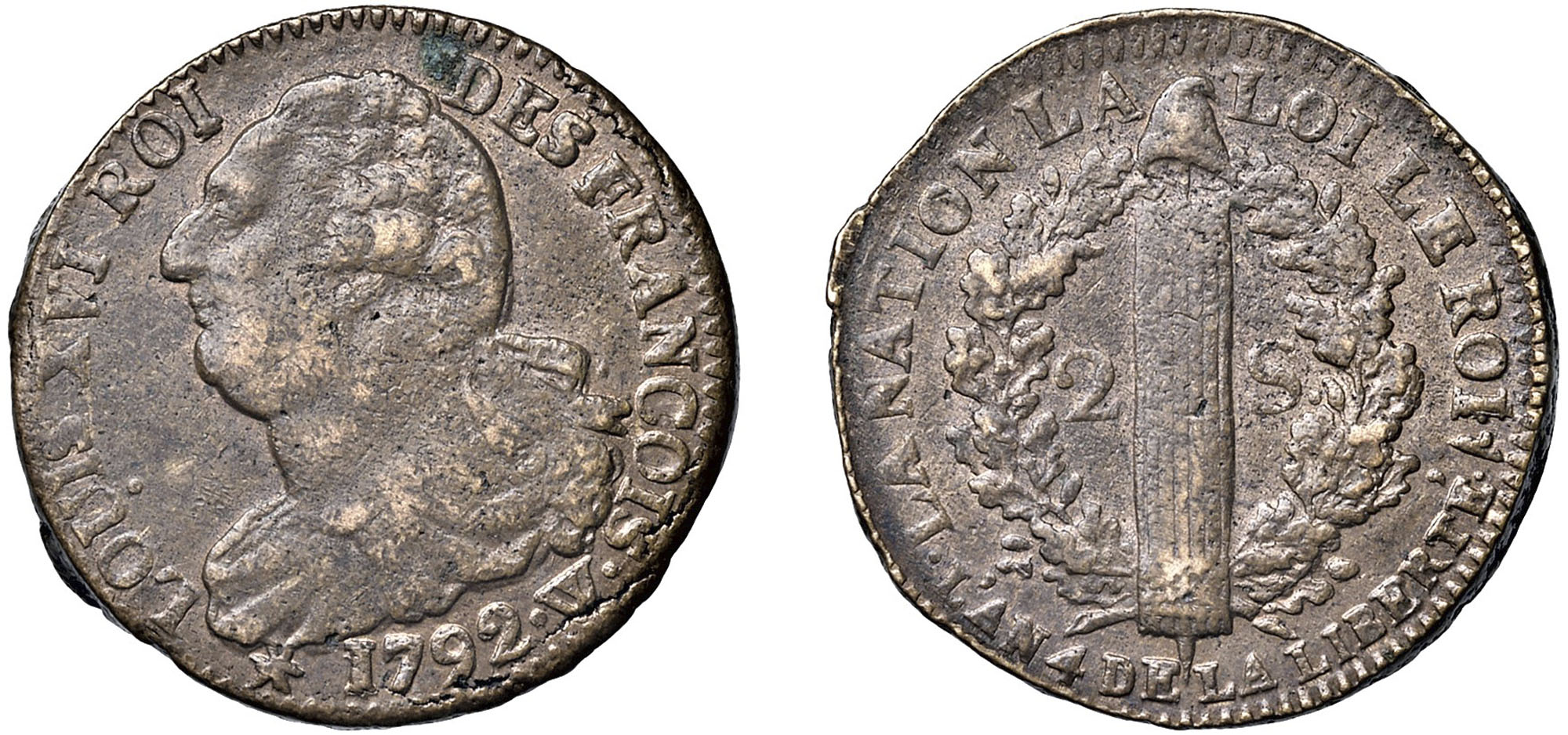 FRANCIA - LUIGI XVI, Prima Repubblica Francese (1791-1793) - 2 Soles 1792 W, zecca di Lille.
