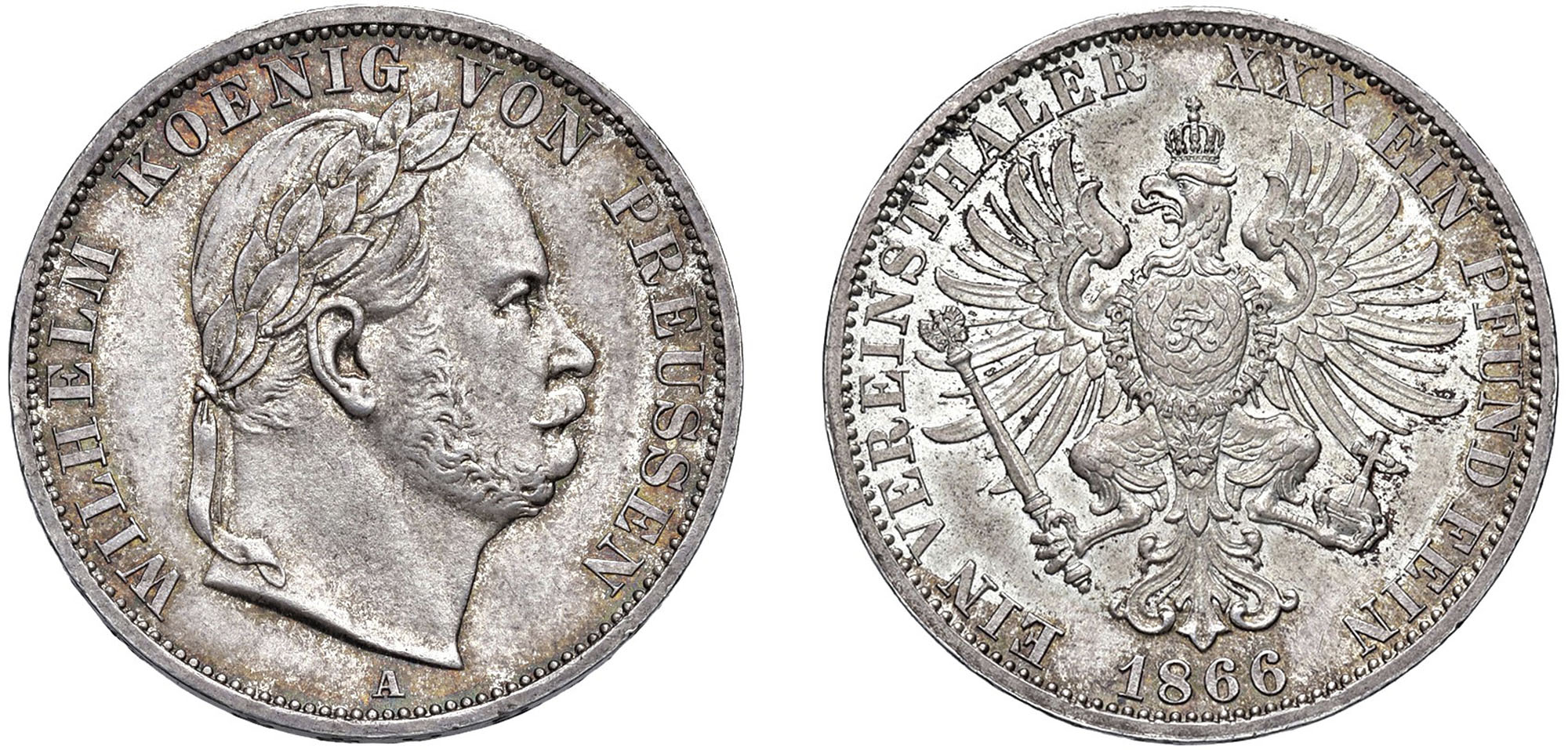 GERMANIA - PRUSSIA - GUGLIELMO I (1861-1888) - Thaler 1866, Berlino.