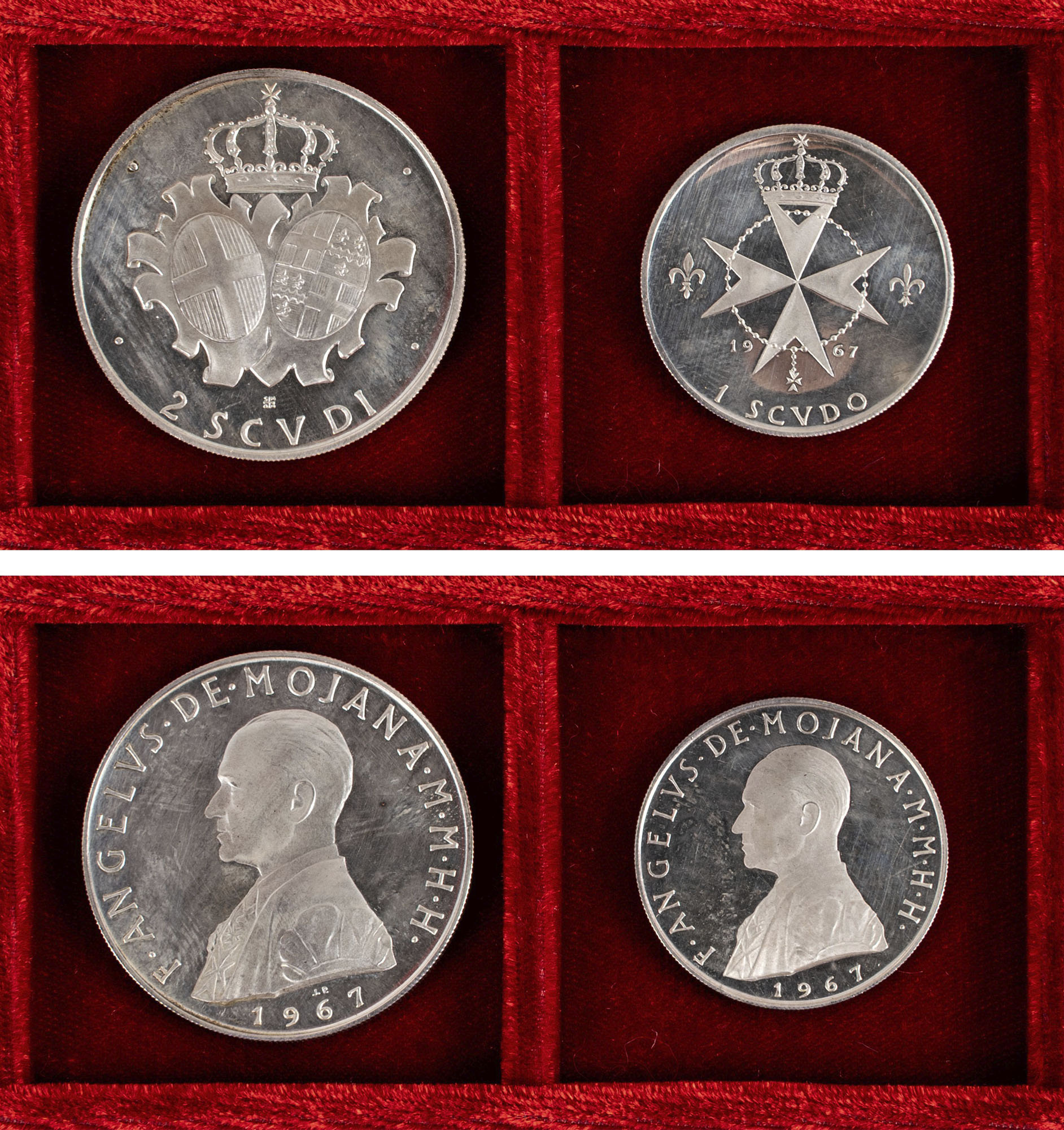 MALTA - Sovrano militare Ordine dei Cavalieri di Malta, Gran Maestro Angelo De Mojana di Cologna (1962-1988) - Lotto 2 monete da 1 e 2 scudi 1967.