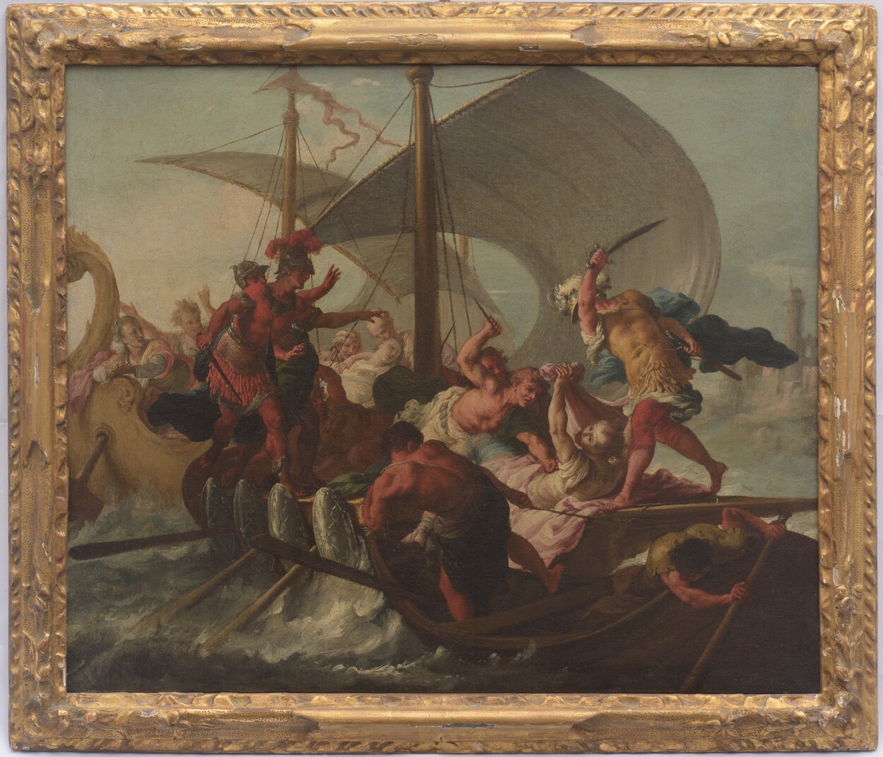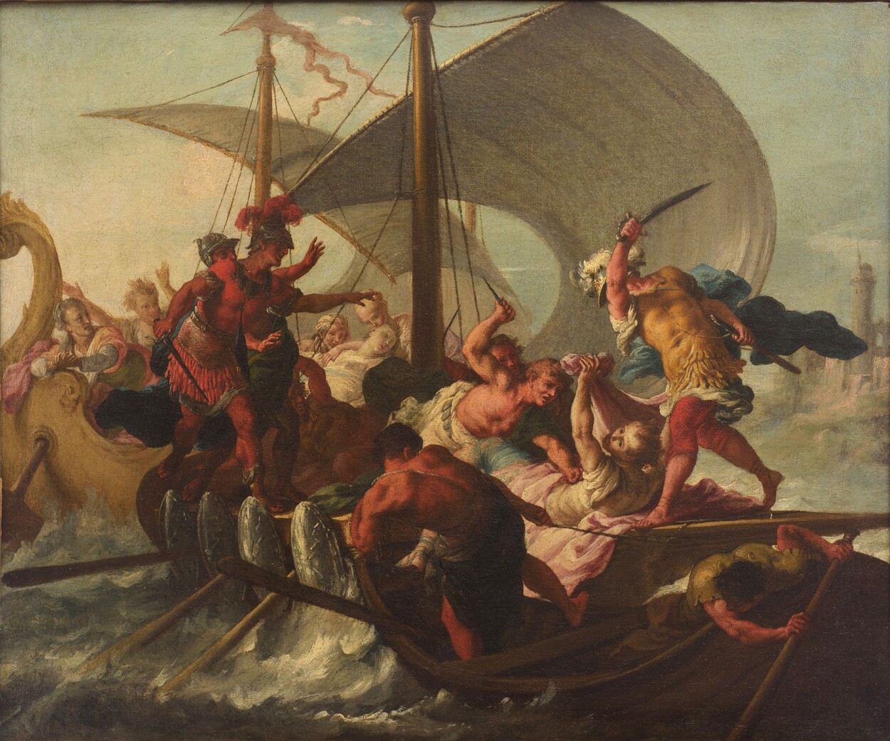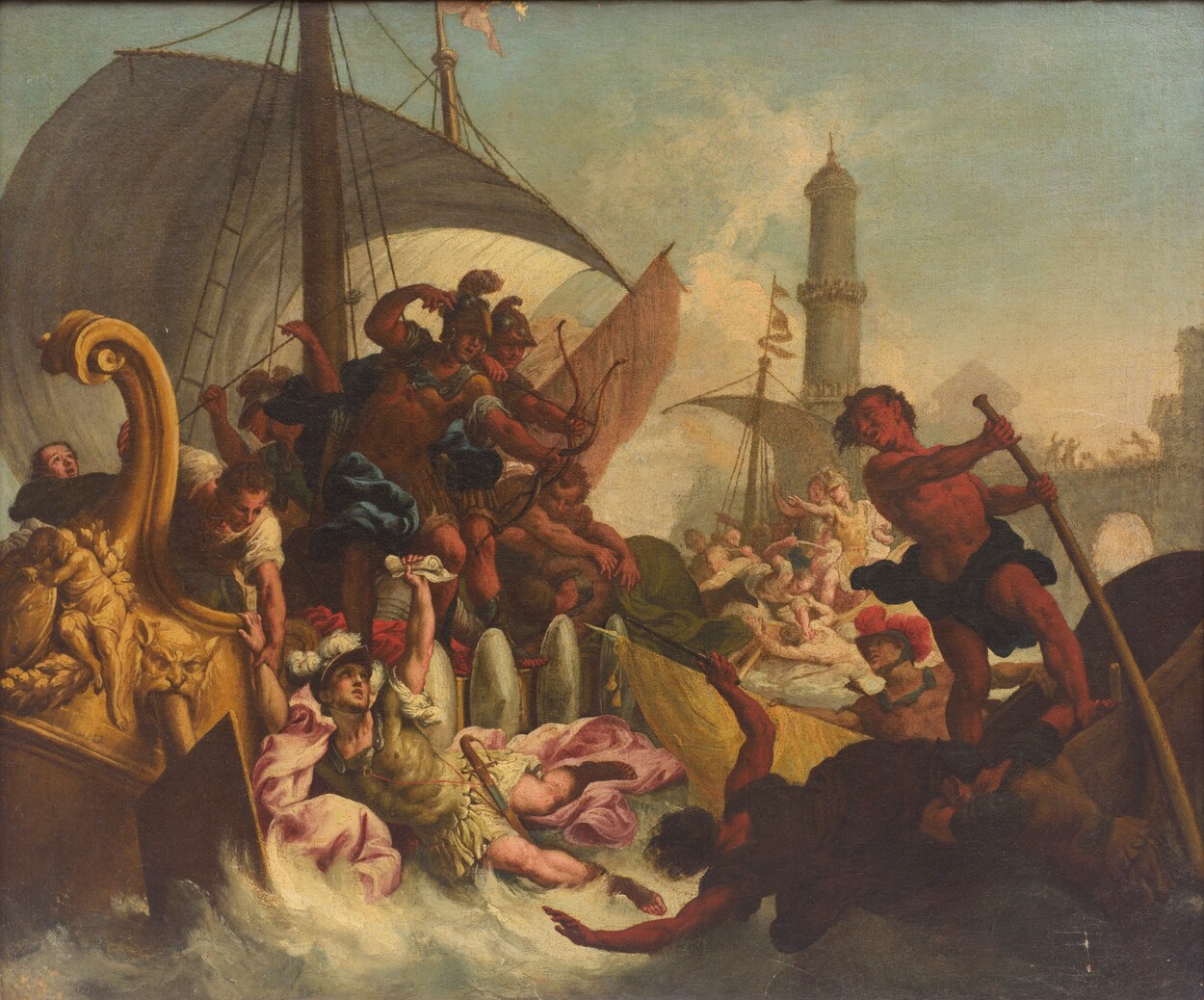 Giacomo Zoboli (attribuito a) (1681 - 1767) Coppia di dipinti raffiguranti episodi di storia romana olio su tela 54 x 66 cm